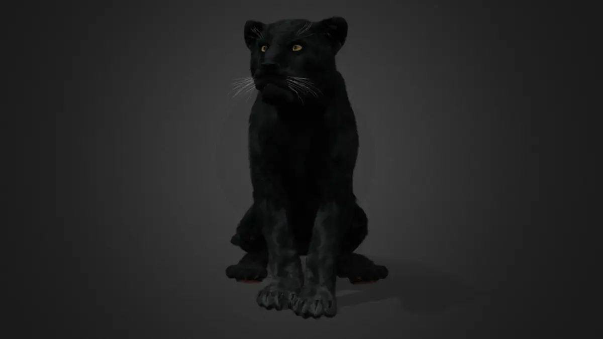 This is a high-quality realistic Panther with complete maps, fur, rigging, 20 realistic animations. The model has a realistic muscle structure, a complex hair system ( HAIR CARD ). This model is made Maya . It consists of the body, eyes, oral cavity, tongue, paws.