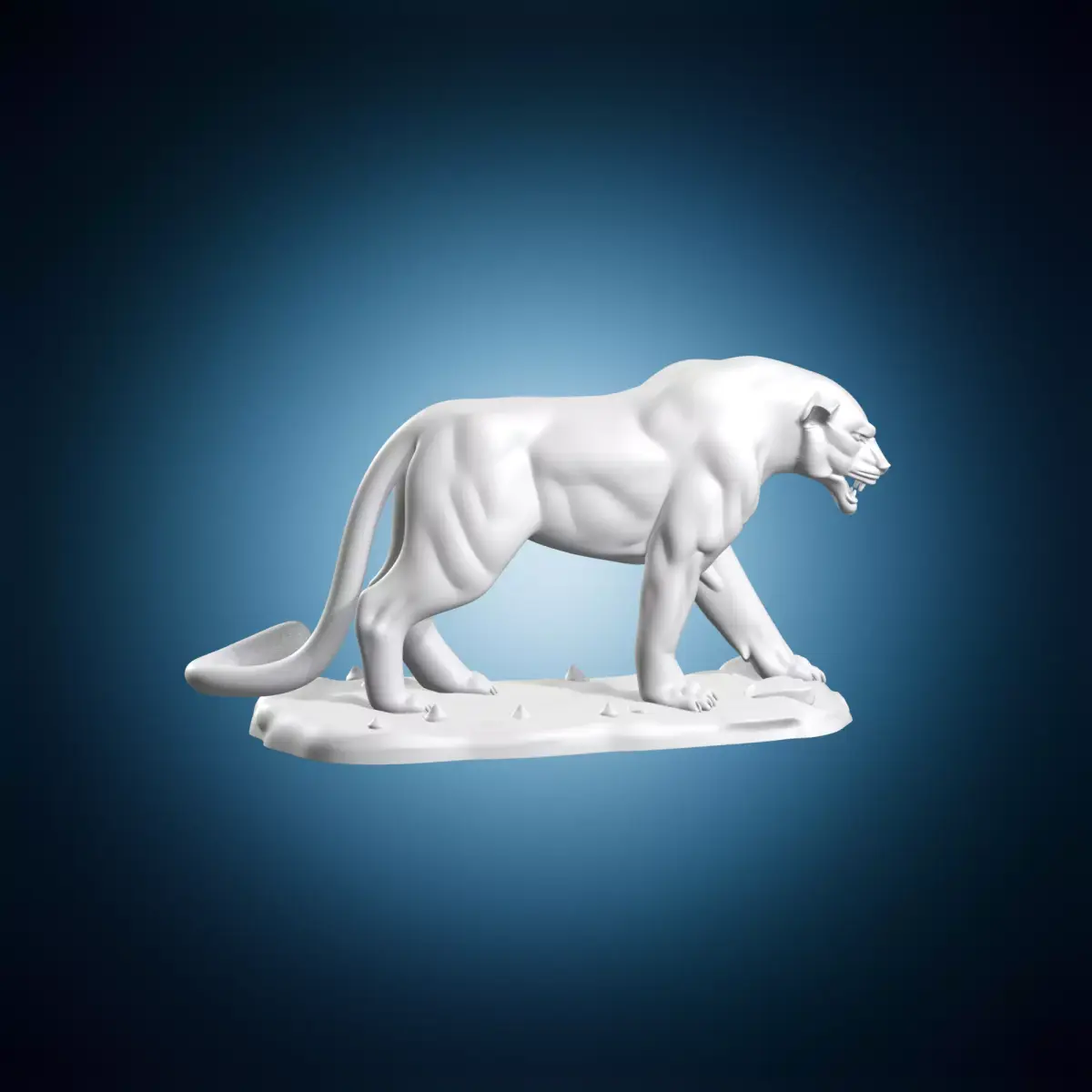 A detailed three-dimensional model of a wild panther in statue form, suitable for architectural or artistic projects. This sculptural representation can be used to create a realistic animal figure for various purposes. The model is ideal for architects, artists, designers, and anyone looking to add a wildlife element to their project. It features intricate details and textures, making it perfect for animation, film, or photography.