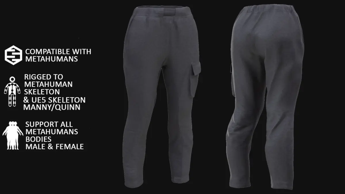 100% compatible with ALL male and female Metahuman bodies (MH Skeleton)