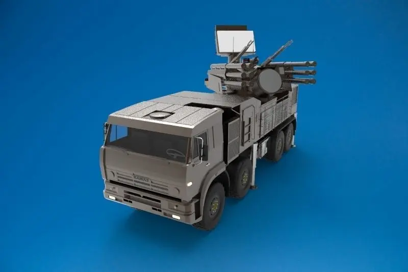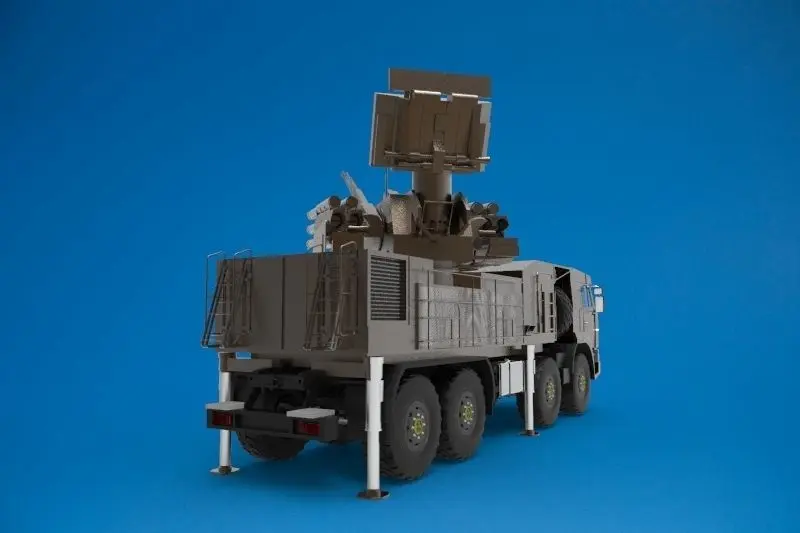 The Pantsir S1, a state-of-the-art 3D model, meticulously captures the essence of the Russian mobile air defense system renowned for its advanced technology and robust performance. This digital representation showcases the intricate details of the Pantsir S1, from its dual 30mm autocannons to the 12 surface-to-air missile tubes, highlighting its formidable defensive capabilities. The model features realistic textures, precise geometry, and accurately scaled components, making it an invaluable tool for simulations, educational purposes, and defense strategy planning. Its lifelike rendering not only offers a visual feast but also serves as a comprehensive resource for understanding the complexities and operational prowess of this sophisticated weapon system.