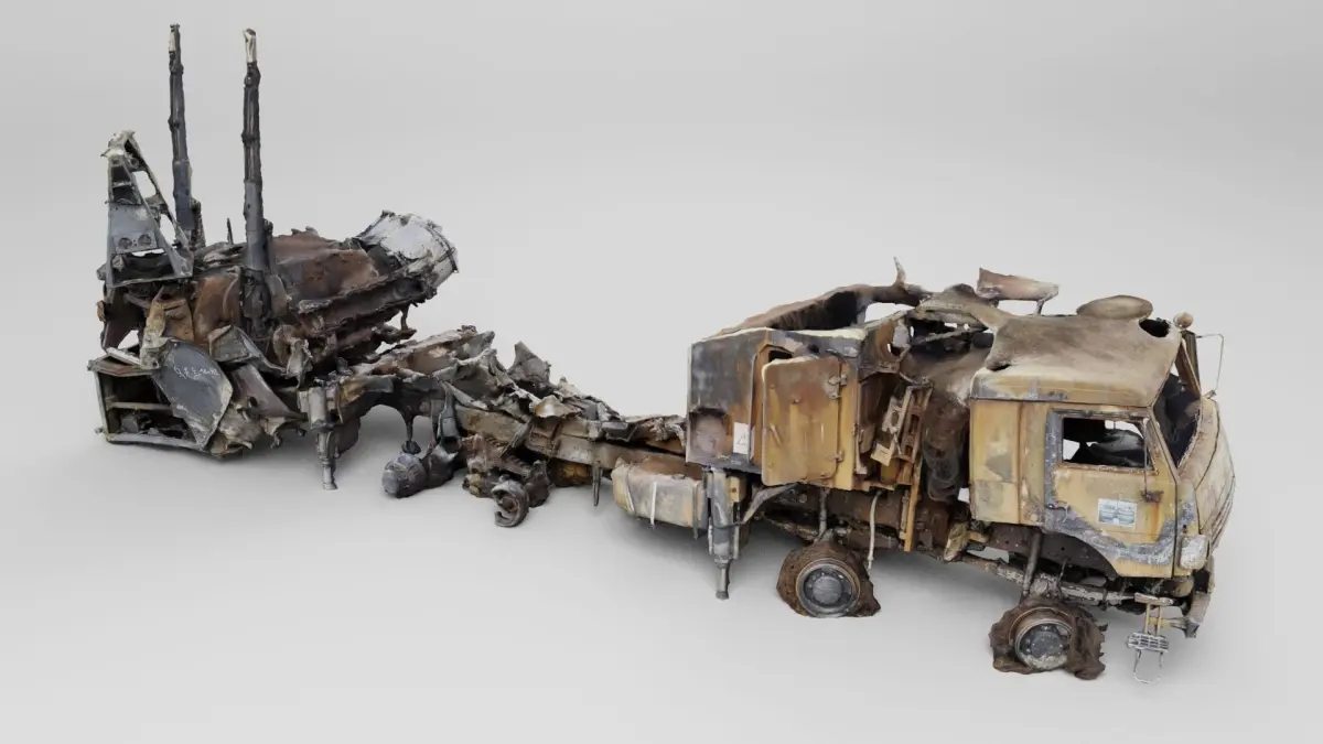 Pantsir-S1 missile system destroyed by Ukrainian army during russian invasion of Ukraine, 2022. war in Ukraine. Please support Ukrainian artists.