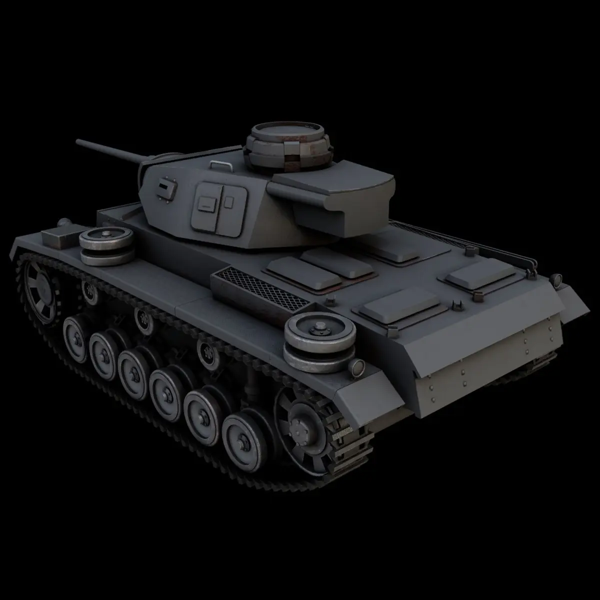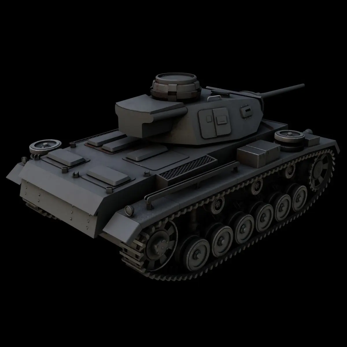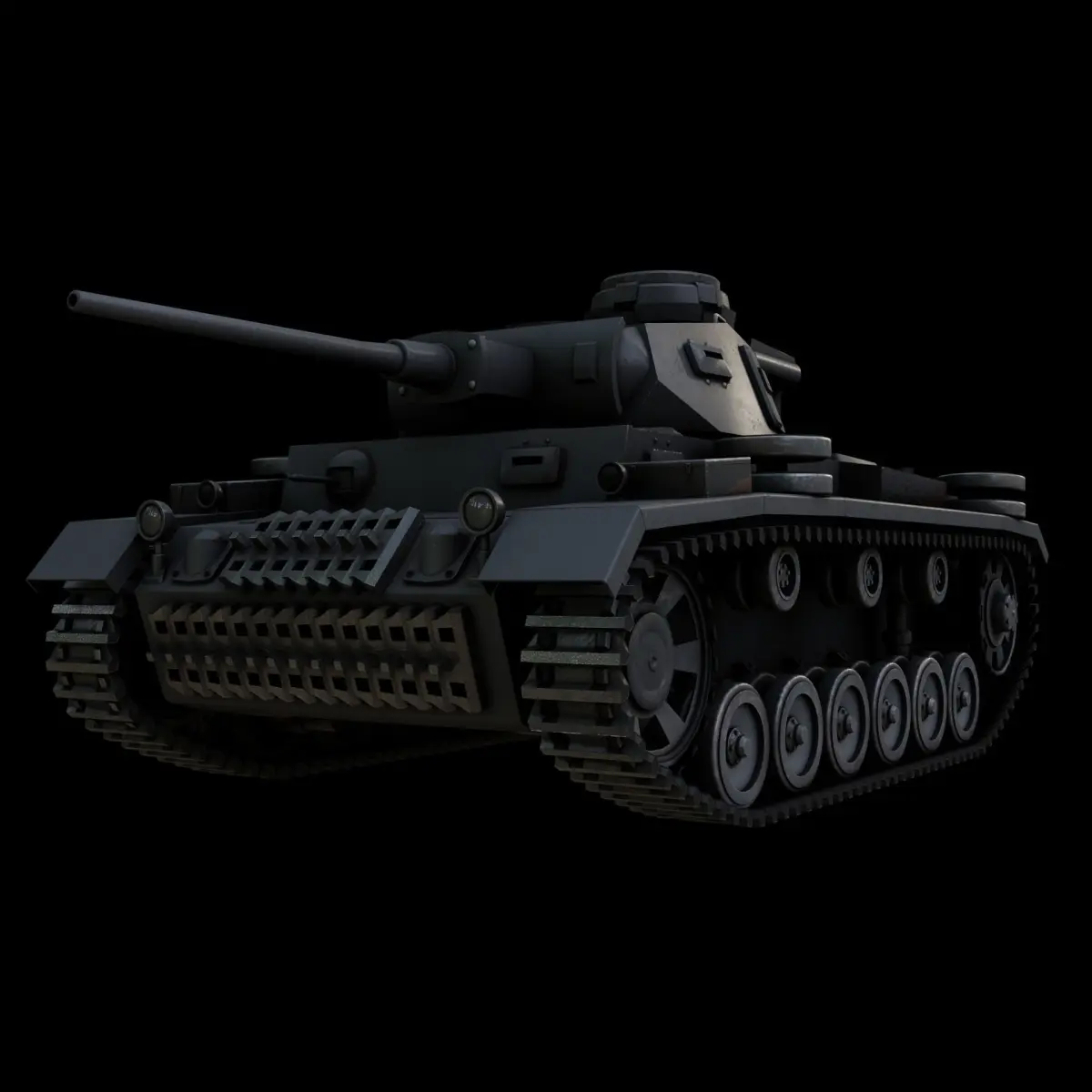 The most common variant of the Panzer III, which served in North Africa and the Eastern Front. Hull and turret front armour increased to solid 50 mm plate. Spaced armour was placed around the gun mantlet. Some were produced with 5cm KwK 39 L/60 gun and later redesignated Ausf. L.