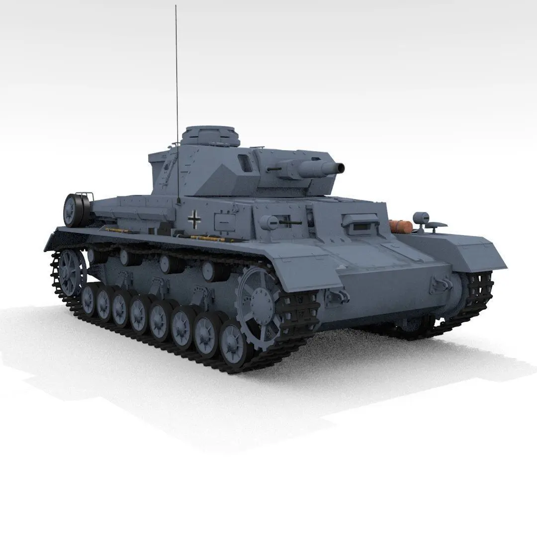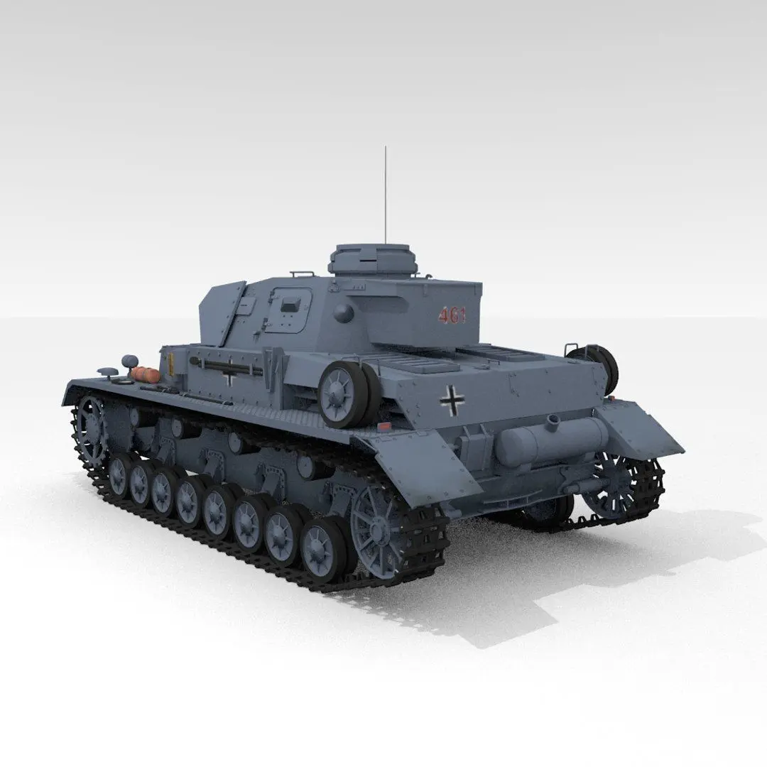 Panzer Kampfwagen IV Ausf.E Vorpanzer Medium tank FeldGrau. 11 textures used, all textures are attached into the blender file. Both blender versions are supported, 2.79 and 2.92. OBJ and FBX formats supported too. Some materials may only works properly under blender.