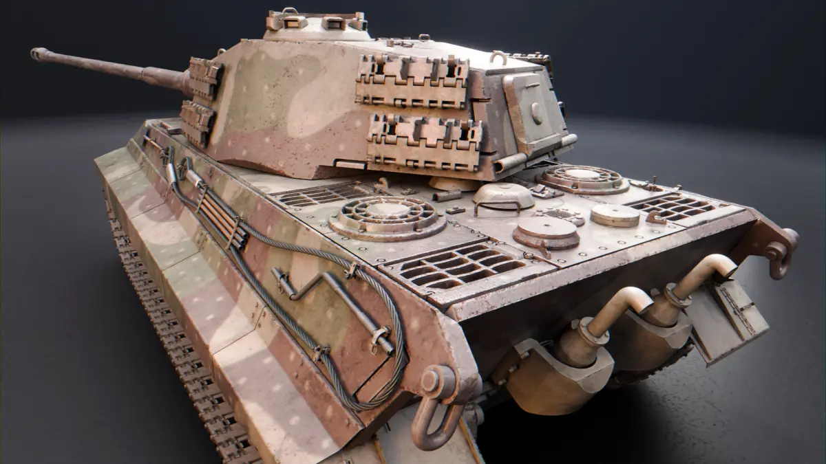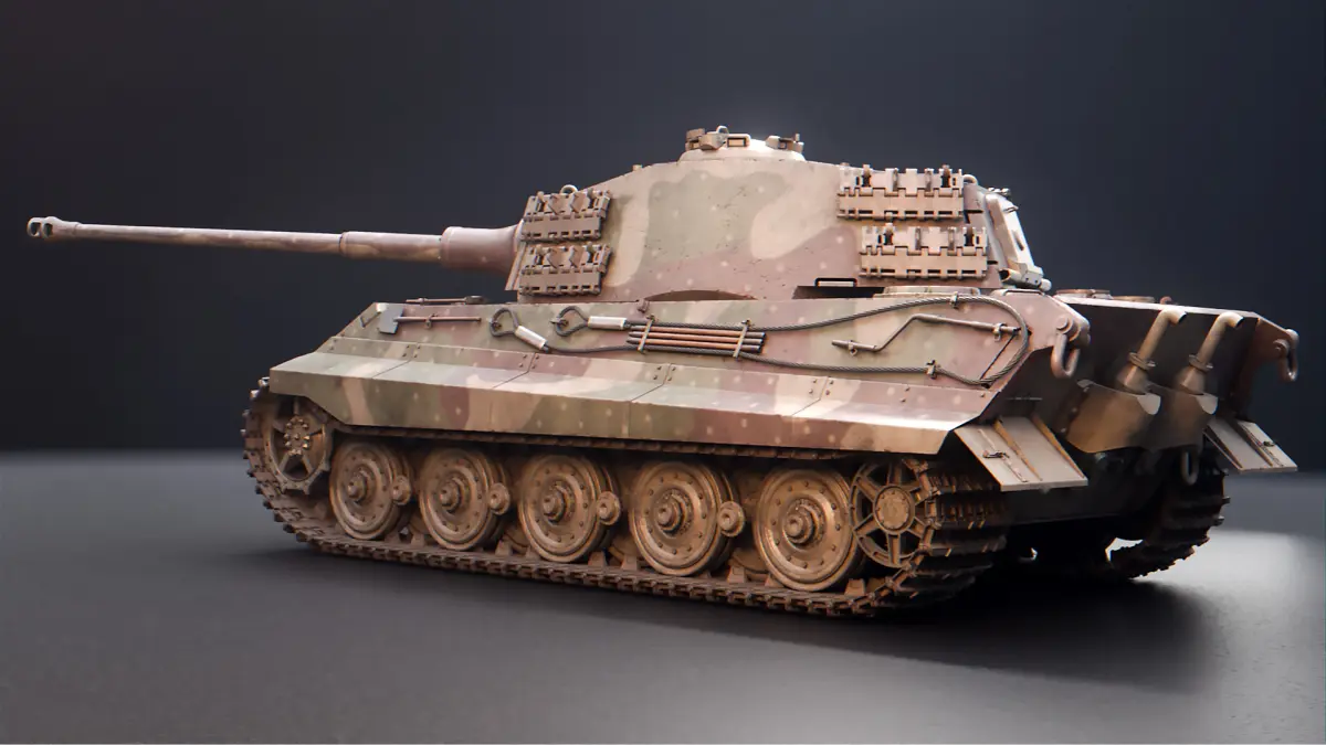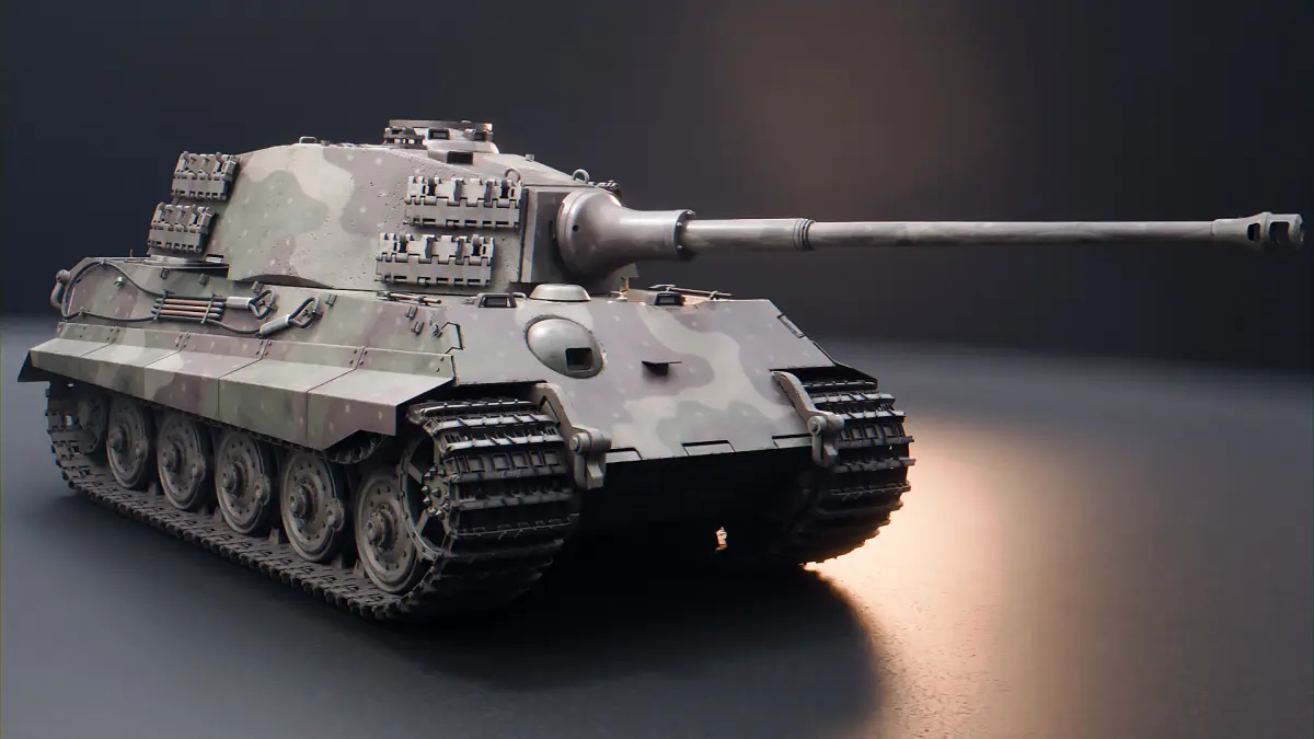 Panzerkampfwagen VI Tiger Ausf. B was a heavy tank designed by the Nazi Germany during the second world war. It produced by Henschel, Krupp and Porsche companies, the project started during 1937, but it was adbandoned and retook in 1941. The tank entered in service for first time during the Normandy battle and was in service until 1945, Tiger II also took part in the Market Garden operation, the battle of the Ardennes, the soviet offensive in Poland and the german ofenssive to Hungary during 1945. It was the evolution of the Tiger project, combining the best characteristics of the Tiger I and Panther tanks, having an inclined and heavy armor, a relatively good movility and a high firepower, however, the inexperience of the new german tank crews during the ends of the war and the resources lack of the country caused that some of this advantages were wasted and finally the tank did not play a fundamental role in the course of the war .