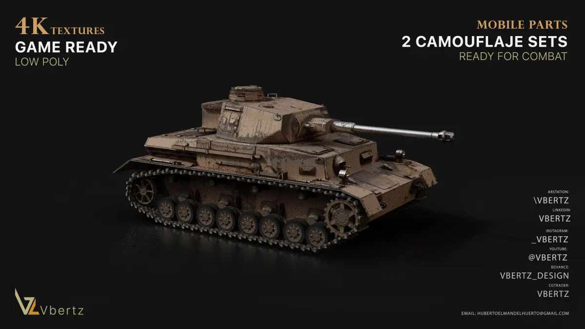 high detailed game ready model of a german ww2 medium tank. with 2 color variants and full of details this model can be used in a first or third person games.