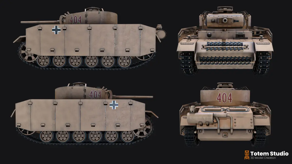Medium Poly model of German PANZERKAMPWAGEN III AUSJ. M.-Model contains real details and proportions.-2048x2048 textures included.-52 Mesh Object.-53 Texture Set.The Panzer III was intended as the primary battle tank of the German forces. The Panzer III Ausf. A through D were powered by a 250 PS (184 kW), 12-cylinder Maybach HL108 TR engine, giving a top speed of 35 km/h (22 mph). Modelled on Blender and textured on Substance Painter