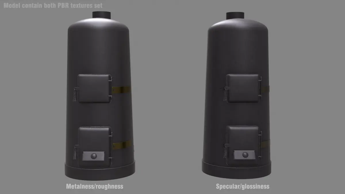 Contain full pack of Textures for both PBR workflows, main - PBR metallness worflow for native file, and specular/glossy workflow in additional files. One texture at 4096 px