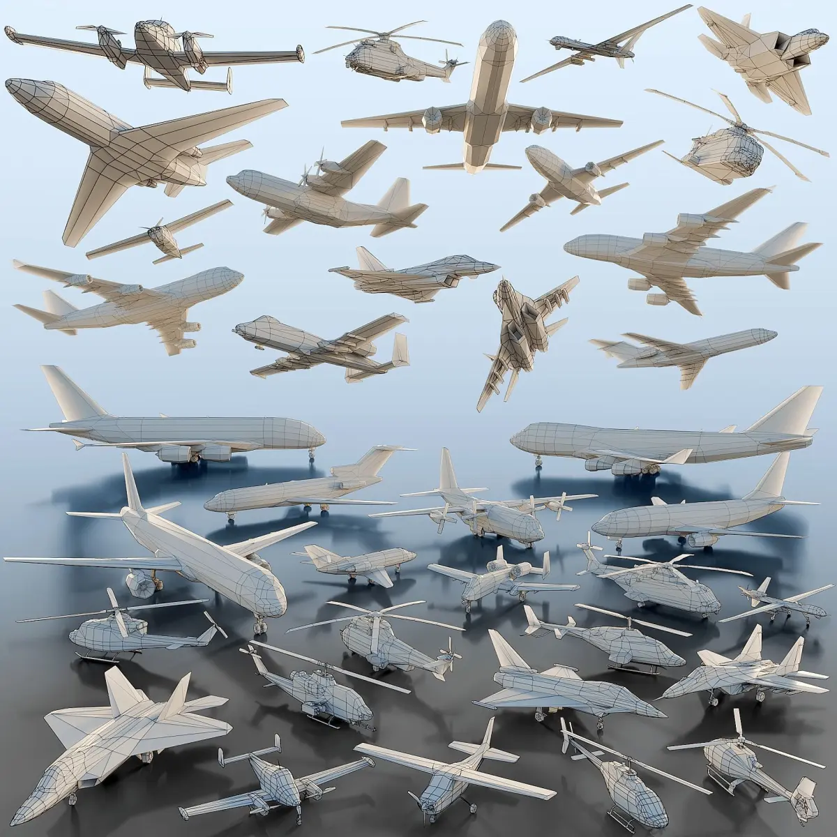 This set contains 21 different 3D low-poly aircraft models, ready for use in real time games or rendered visualisations.
