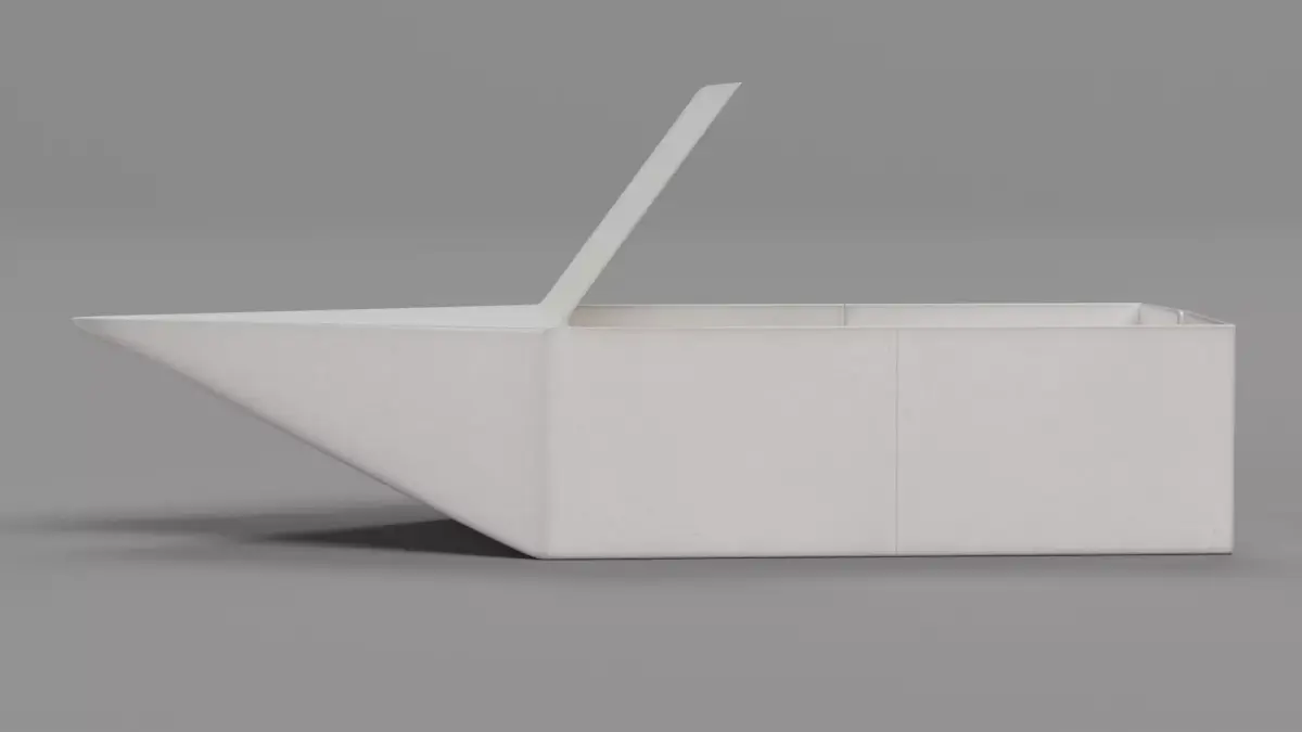 A stylized paper boat model designed to resemble a carefully folded paper sculpture. This 3D asset captures the delicate geometry, edges, and subtle surface variations of real folded paper material.