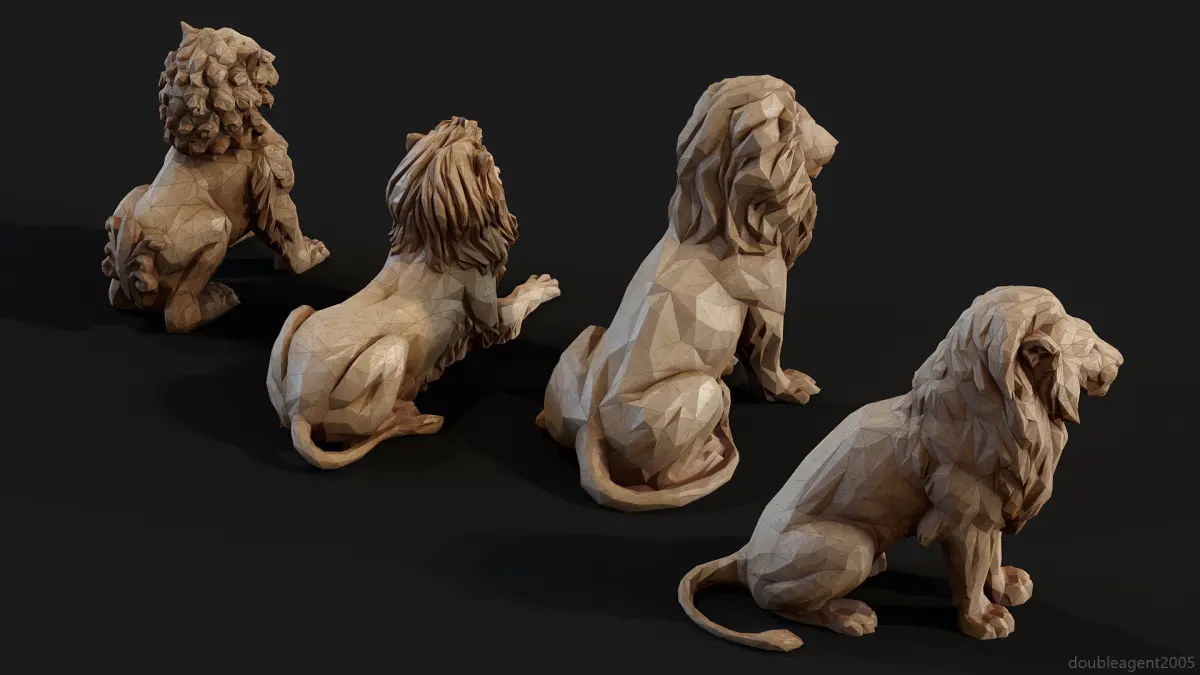 Paper Lions - 5 lowpoly PBR models. High Res 4k texturesUpdate 16.07.21 - added bonus lion! Baked normals, UVW unwrapped, PBR-maps