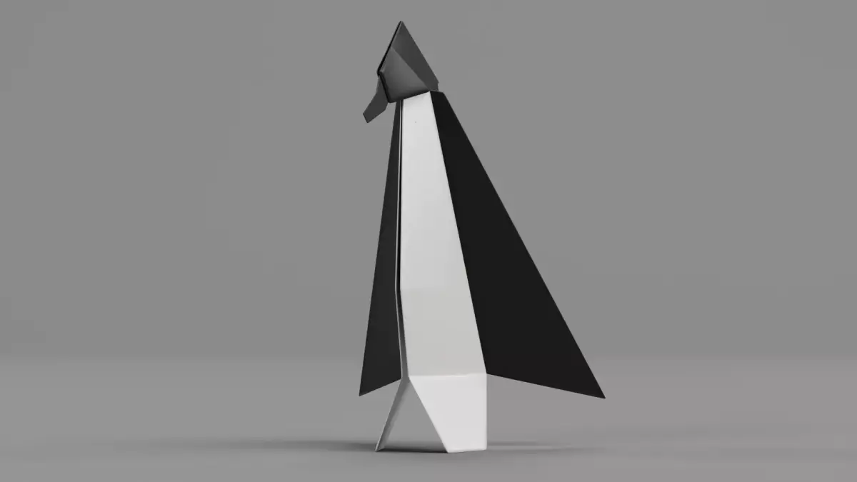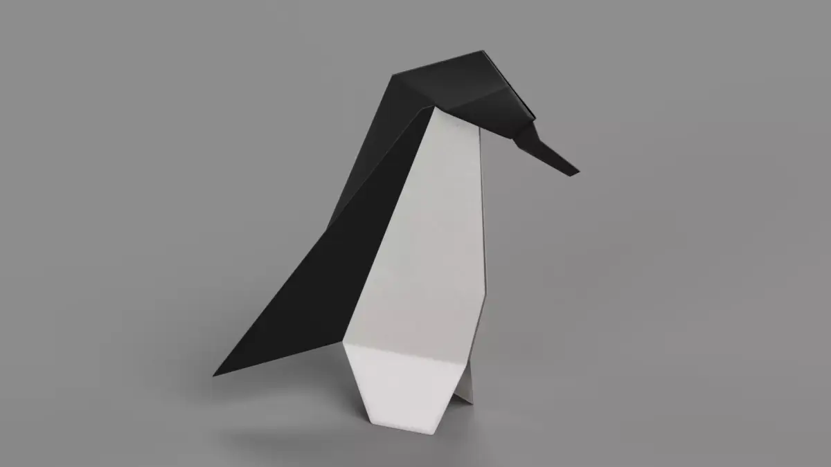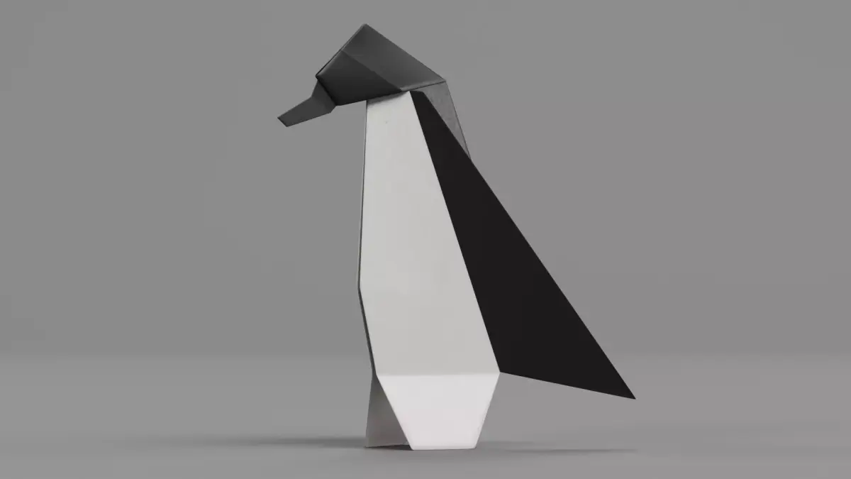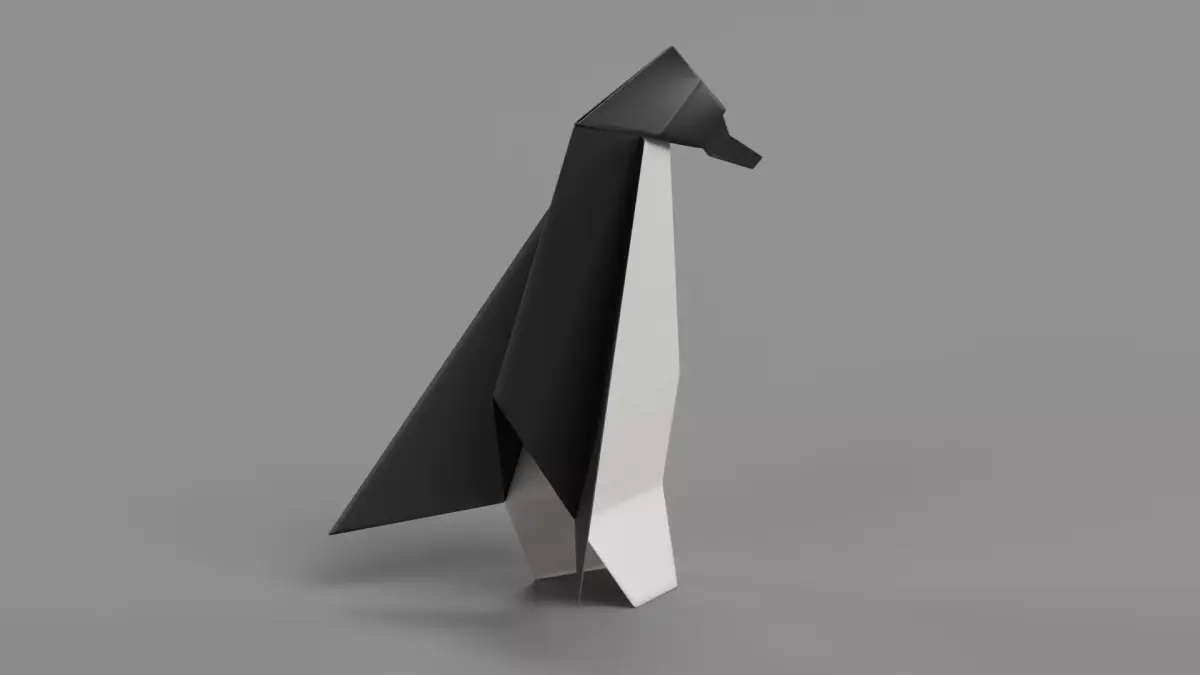 A stylized penguin paper model designed to resemble a carefully folded paper sculpture animal. This 3D asset captures the delicate geometry, edges, and subtle surface variations of real folded paper material.