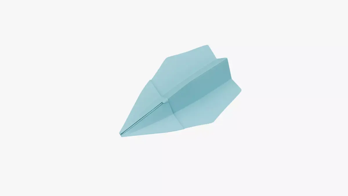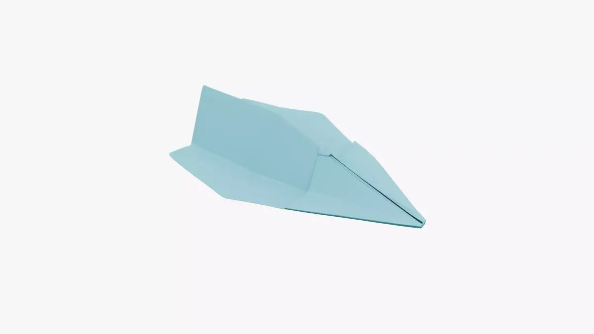 Stylish 3D model of a cyan paper plane with neat fold details and smooth surfaces. Perfect for animations, school projects, decorative scenes, or minimalist renders.