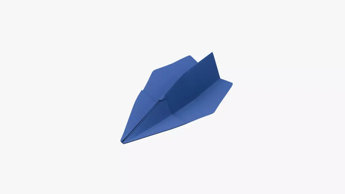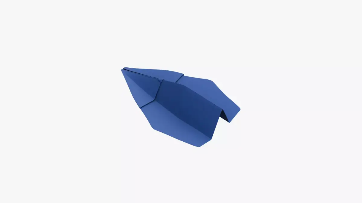 High-quality 3D model of an indigo paper plane with smooth folds and clean topology. Ideal for animations, creative scenes, and educational visuals. Fully optimized for rendering and easy customization.