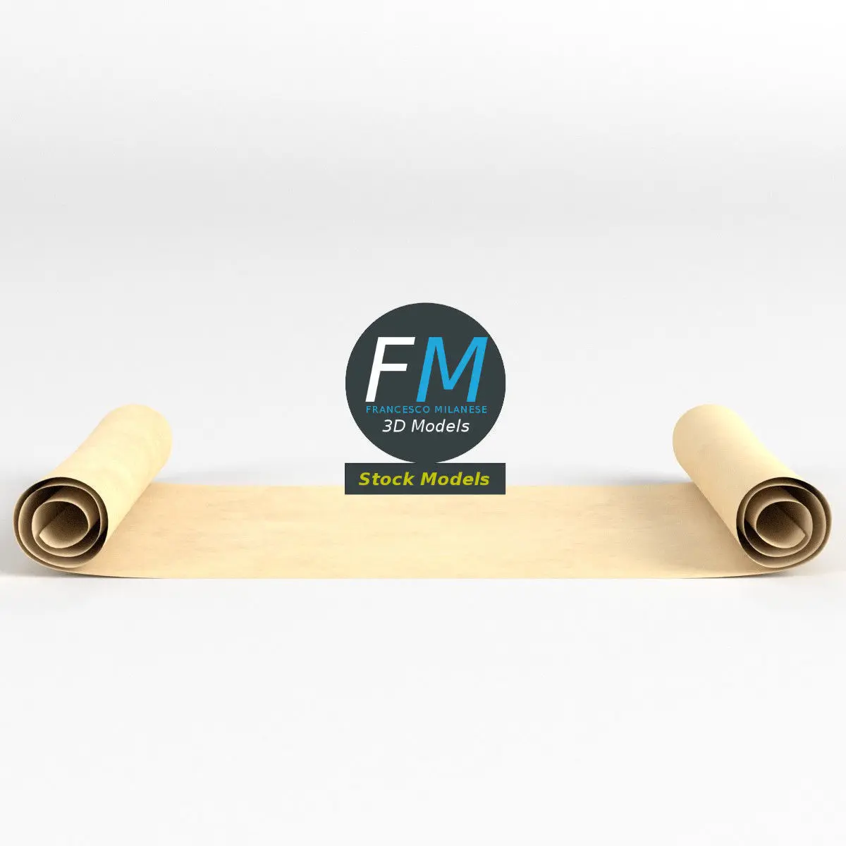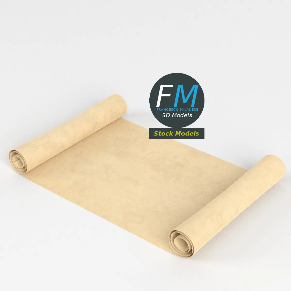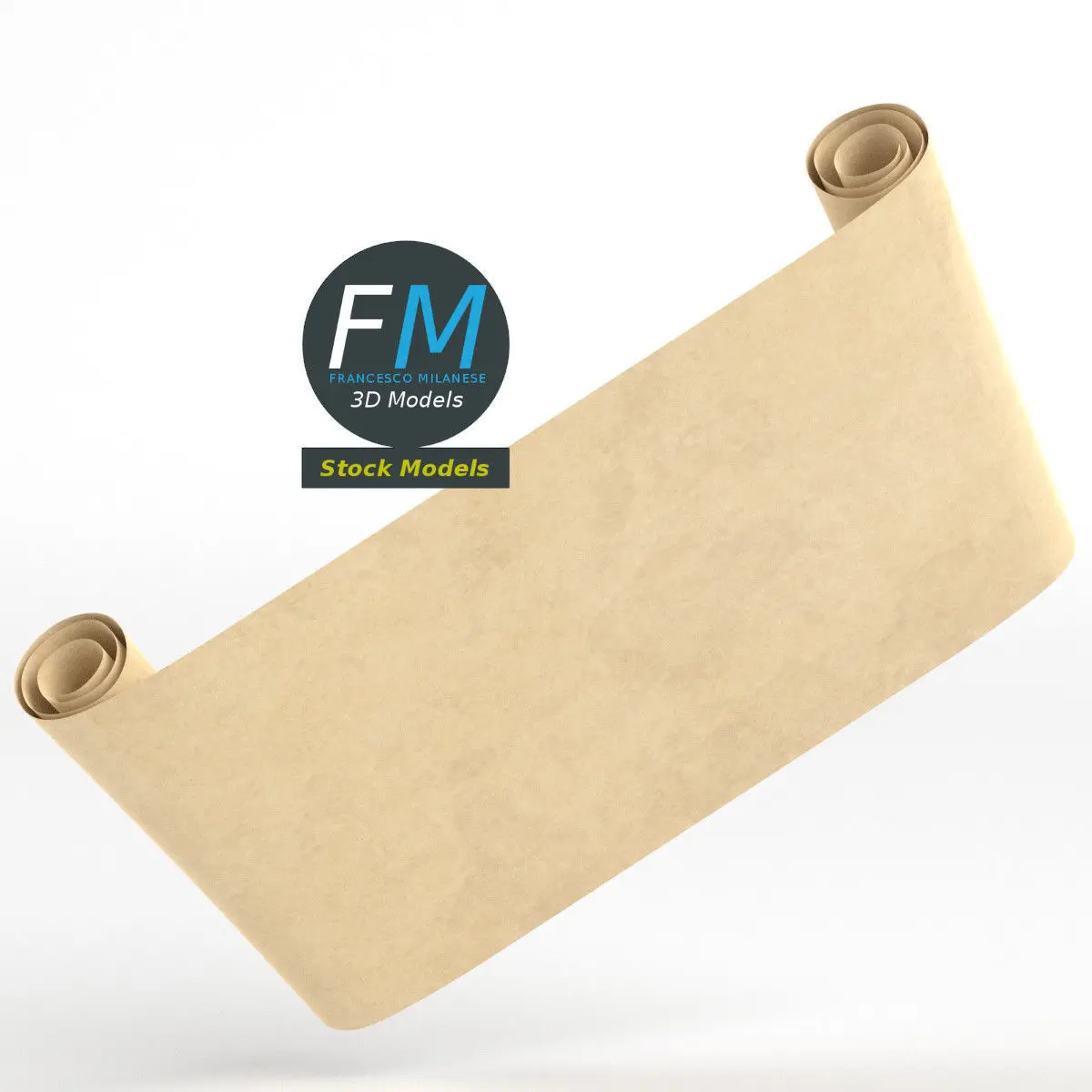 Paper scroll 3D Model. Production-ready 3D Model, with PBR materials, textures, non overlapping UV Layout map provided in the package.Quads only geometries (no tris/ngons).Easily customizable: UV unwrapped geometries; UV Layout maps provided in the package as png with alpha images.Each Object, Material or Texture provided in the package has a unique, meaningful name.Made in Blender 3.6.7 LTS with Cycles Principled BSDF PBR shader with textures included (Eevee compatible), then exported to OBJ and FBX; materials and textures made in Substance Painter (Adobe 3D Painter), exported for PBR, Cycles, V-Ray, Unity, Unreal.PROMO IMAGES: the first image has been rendered in Cycles for Blender; in particular, you can find 11+ promo images in this description: