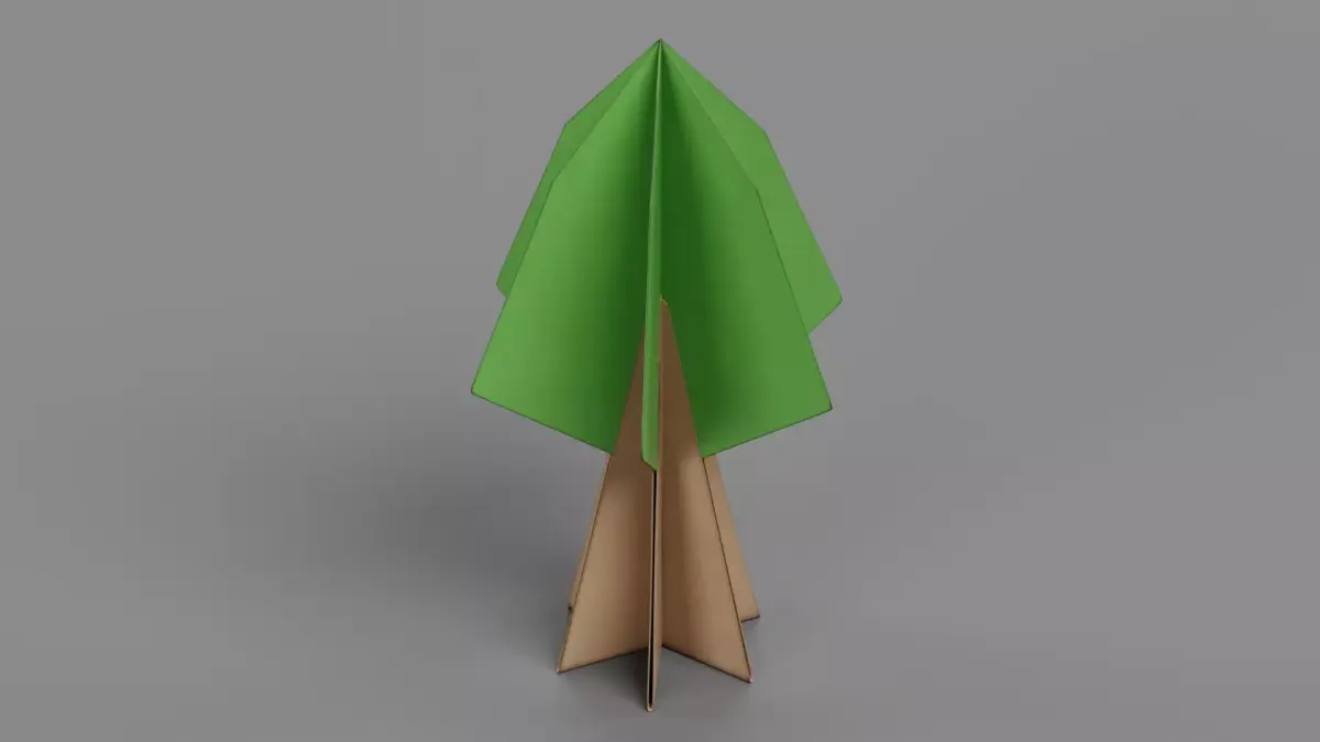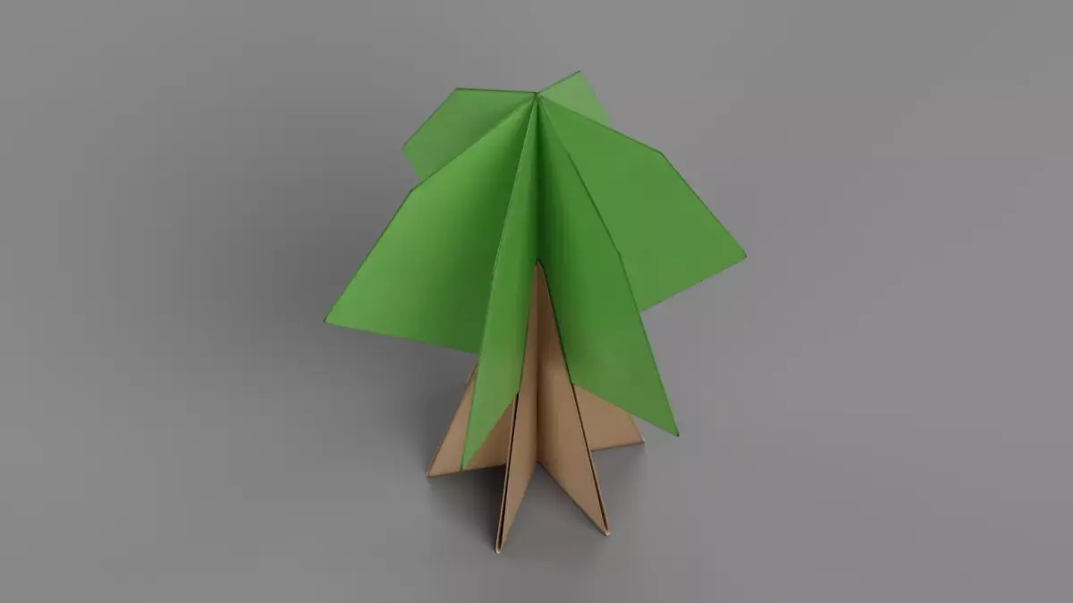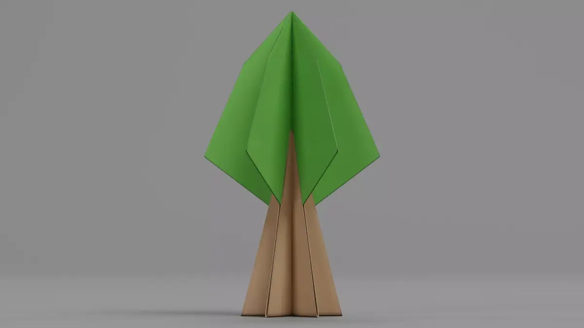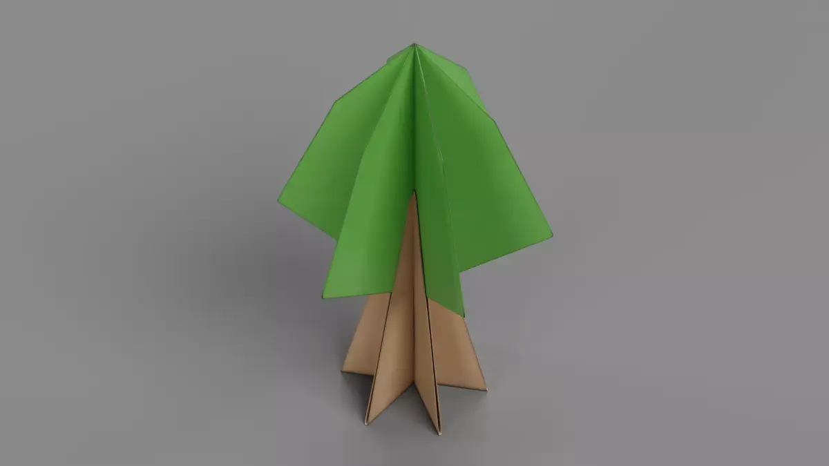 A stylized paper tree model crafted to resemble a carefully folded paper sculpture. This 3D asset emphasizes the delicate structure, edges, and subtle surface textures of folded paper, capturing the essence of a hand-crafted paper form.