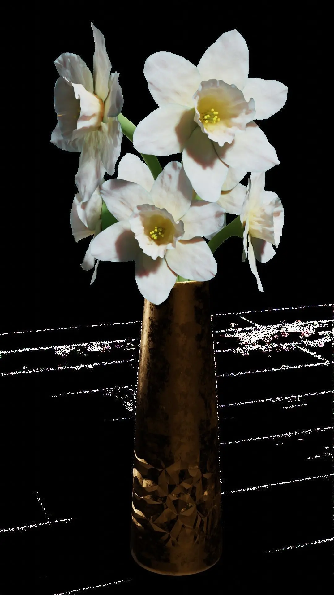 Paperwhite Narcissus flowers in a Copper vase.