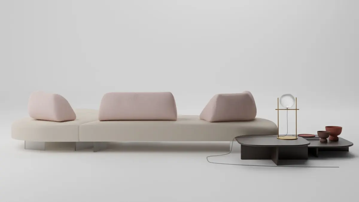 Papilo Sofa, Polyura Tables and Tondina TableLamp by Ditre Italia