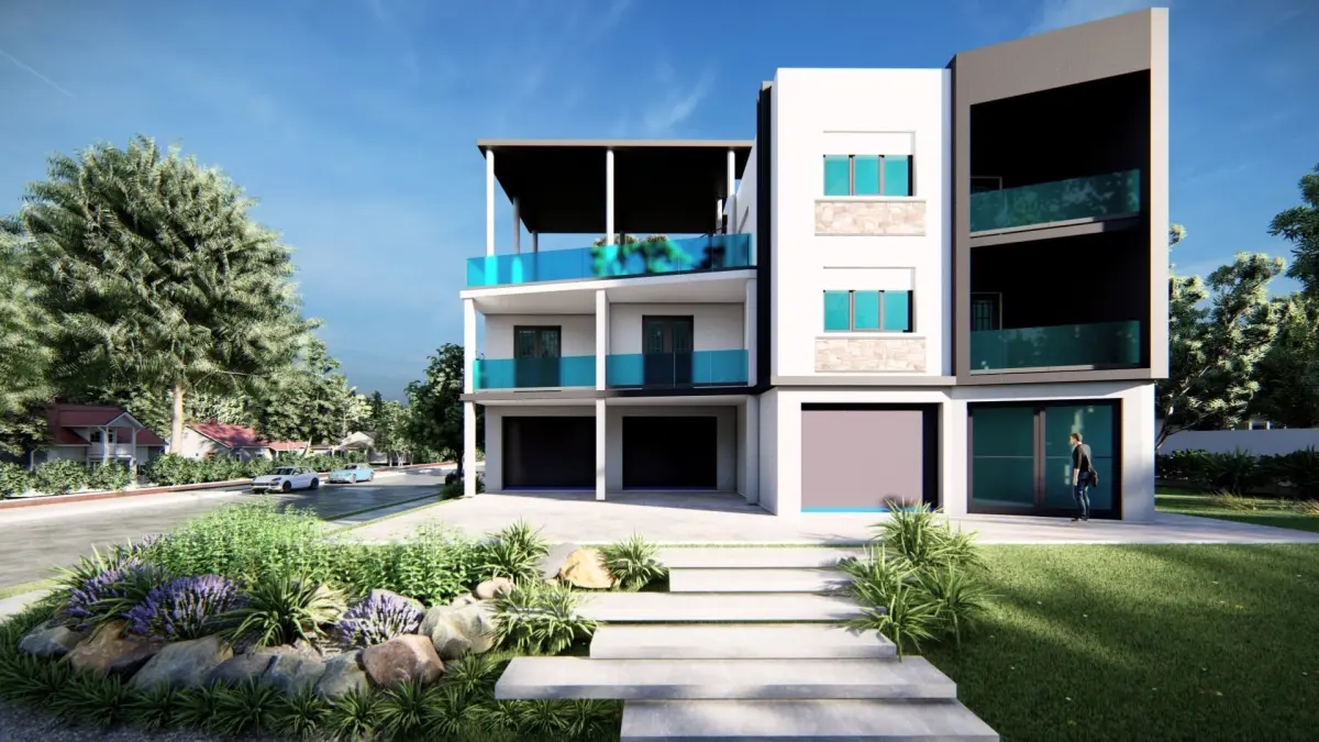 This three-story modern villa with a ground-level storefront seamlessly combines residential elegance with commercial functionality. The facade features sleek materials like glass, steel, and concrete, with large floor-to-ceiling windows and an inviting glass storefront. The open-plan commercial space is designed with a neutral palette and high-quality materials, ideal for a boutique, cafe, or showroom. The first floor offers an expansive living area with contemporary furnishings, an open-concept kitchen and dining area, and additional spaces like a guest bathroom and home office. The second floor houses a luxurious master suite with a private balcony, additional bedrooms, and a cozy family room. The villa includes smart home technology, sustainability features like solar panels, and a covered garage. Meticulously landscaped gardens and a rooftop garden provide serene outdoor spaces, making this property perfect for those seeking a stylish and functional living and working environment.