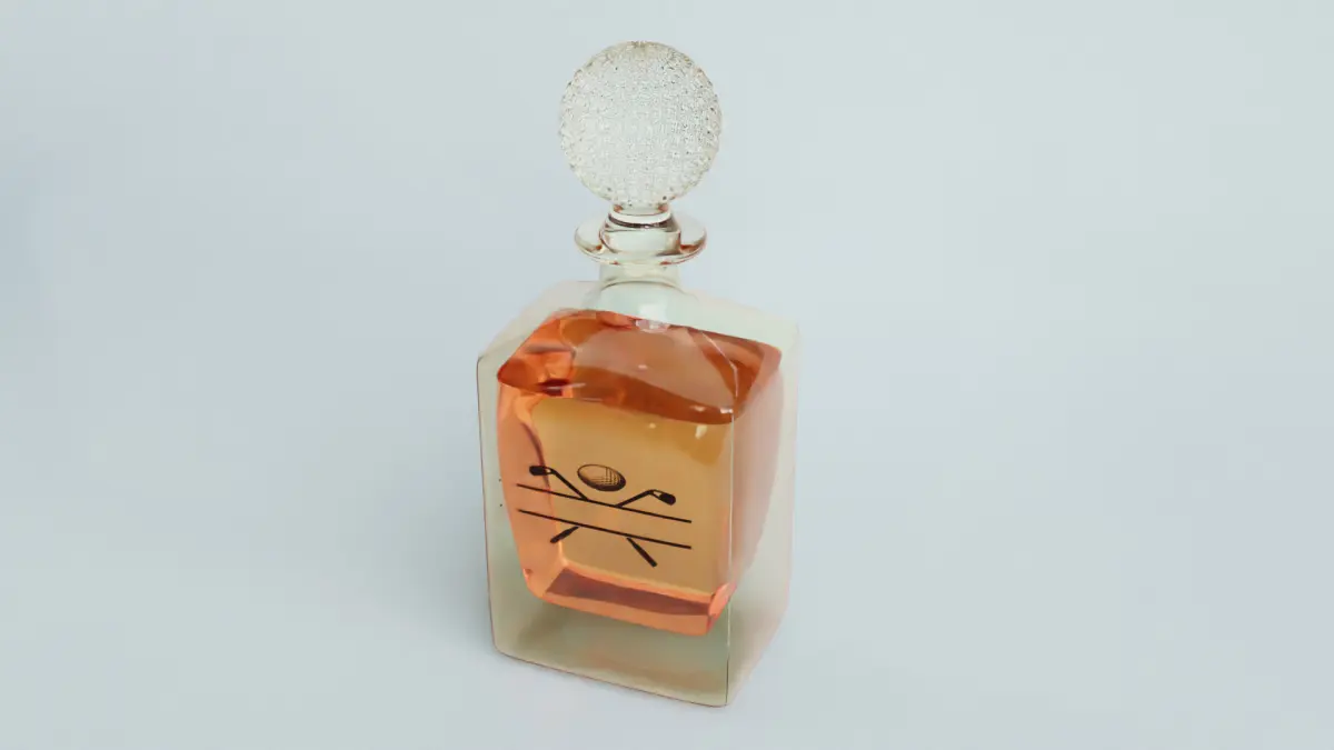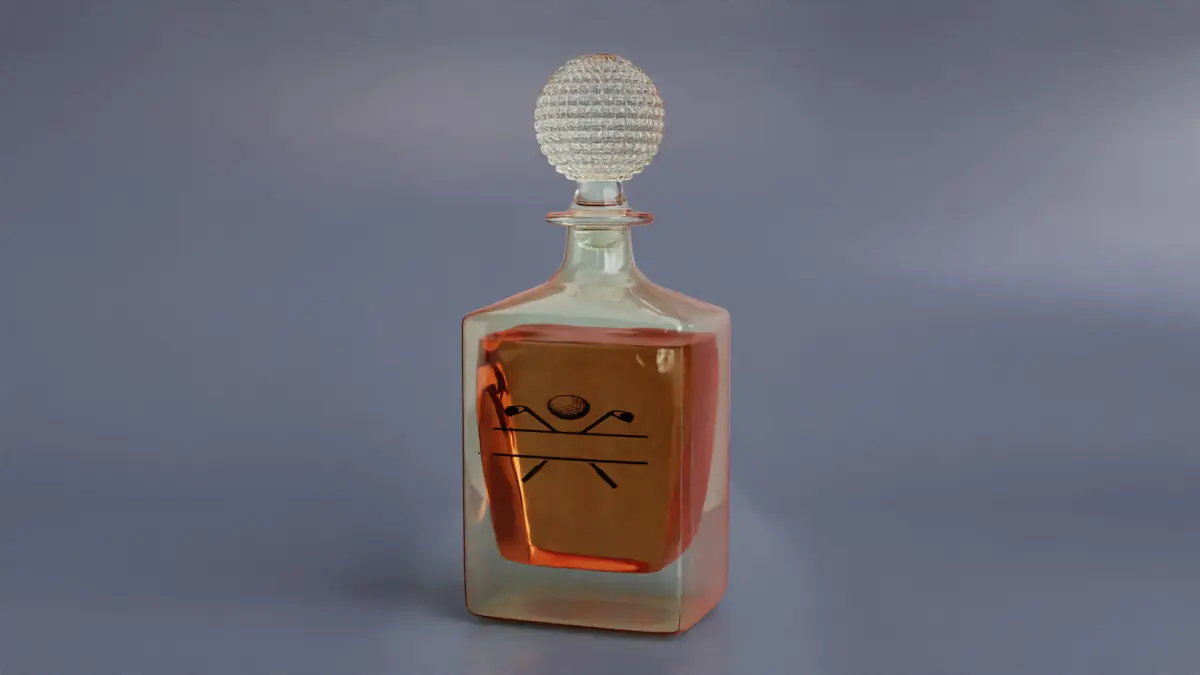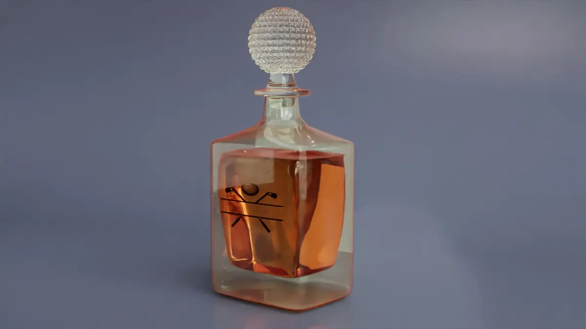 Par Excellence Custom Golf Whiskey Decanter with Faceted Crystal StopperPar Excellence Custom Golf Whiskey Decanter This is a high-quality, AI-generated 3D model of a custom golf-themed whiskey decanter with a faceted crystal stopper. Designed for use in product visualization, interior renders, or decorative scenes, this decanter blends the elegance of fine barware with the charm of the sport of golf.
