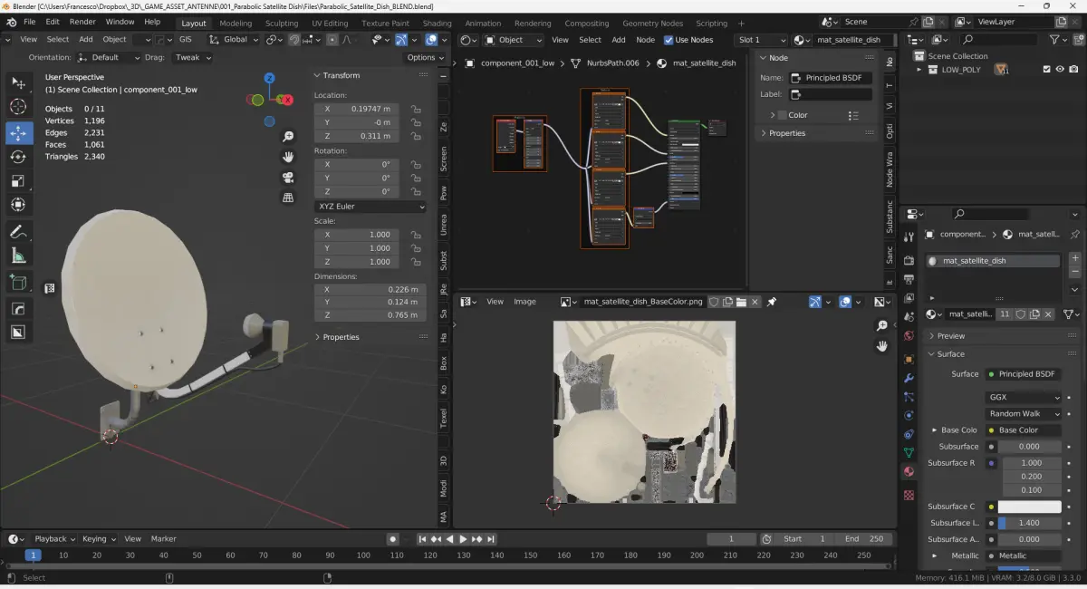 Built with low-poly geometry and high-resolution PBR textures, this satellite dish is the perfect choice for game developers, 3D artists, and architects looking for a detailed and authentic prop for their projects.