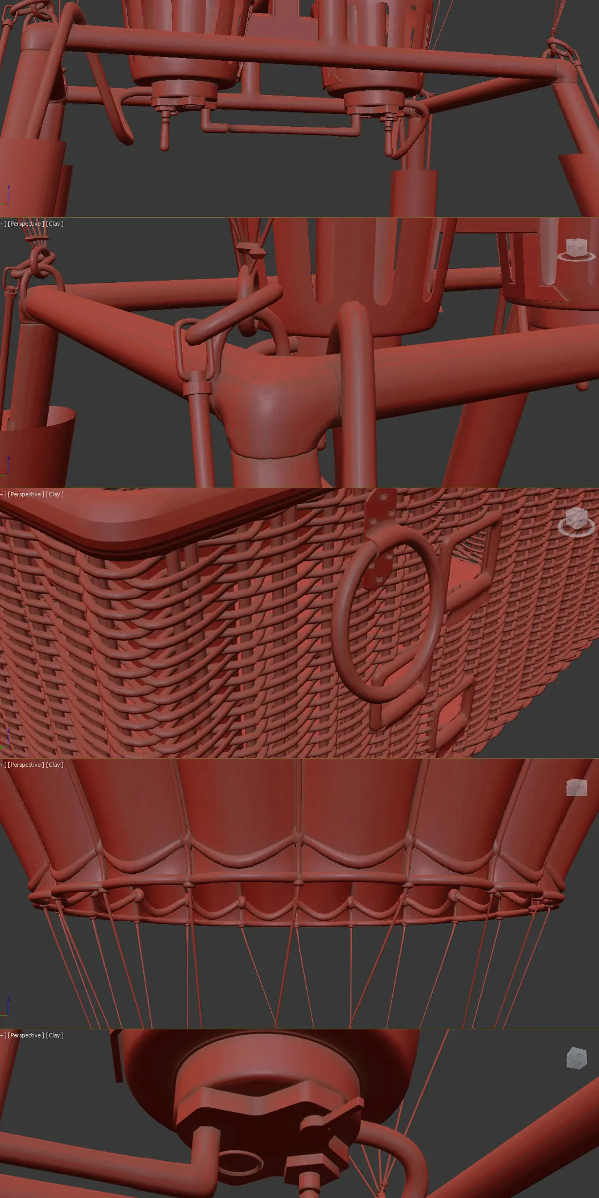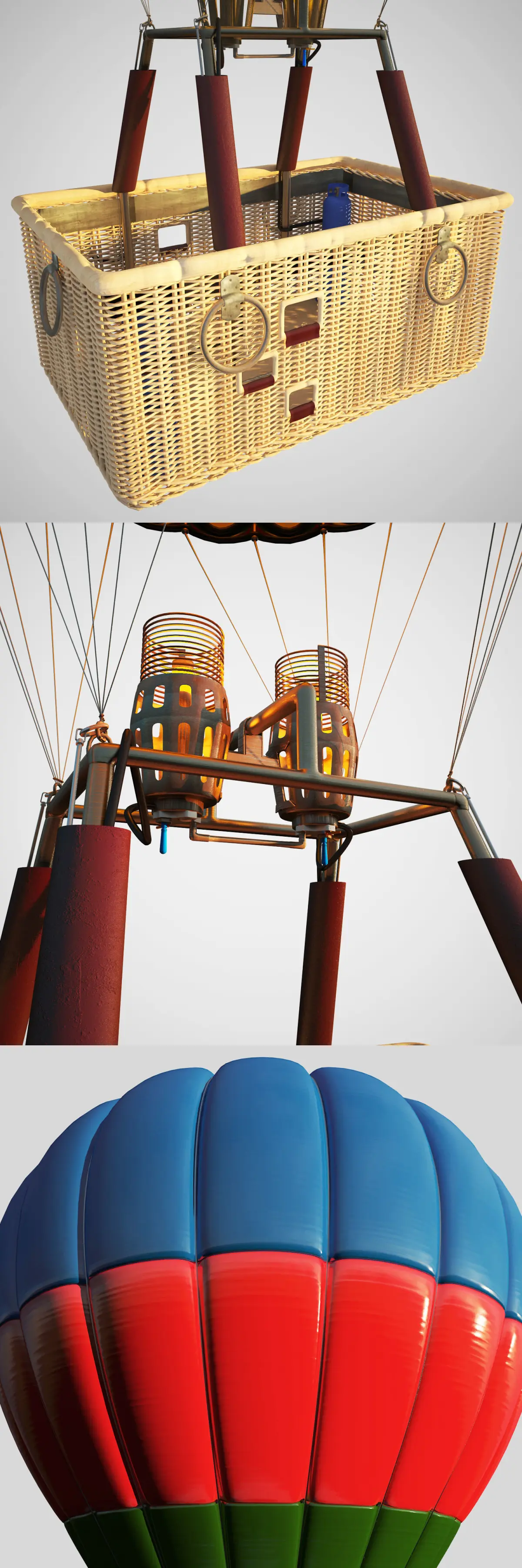 Parachute hot air balloon and wooden box 3D model