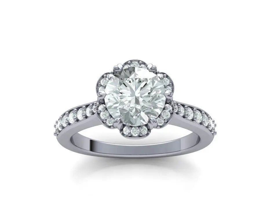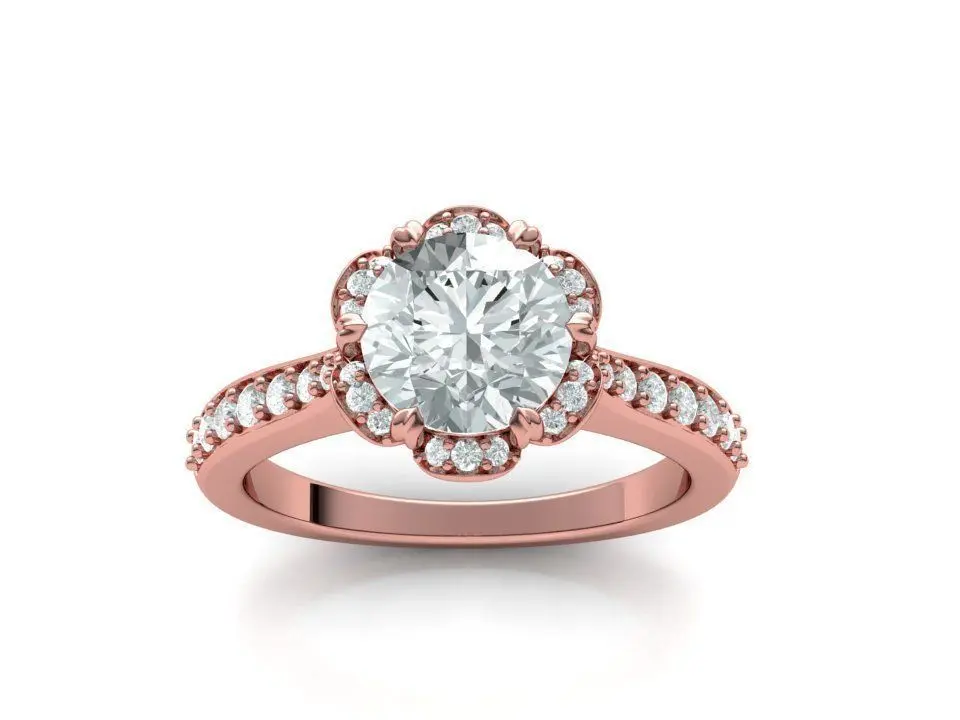 Unique Round Halo ring - Spring ring . Six prong crwon design...Finger sizes: 5,6,7,8 and 9 US finger sizes...Gem report you can see on the picture ...Weight: 4 gr in 14K (for 7 US size) ...Ready for 3d printing Printable 3d model of the delicate Classic Halo design ring... File formats: STL