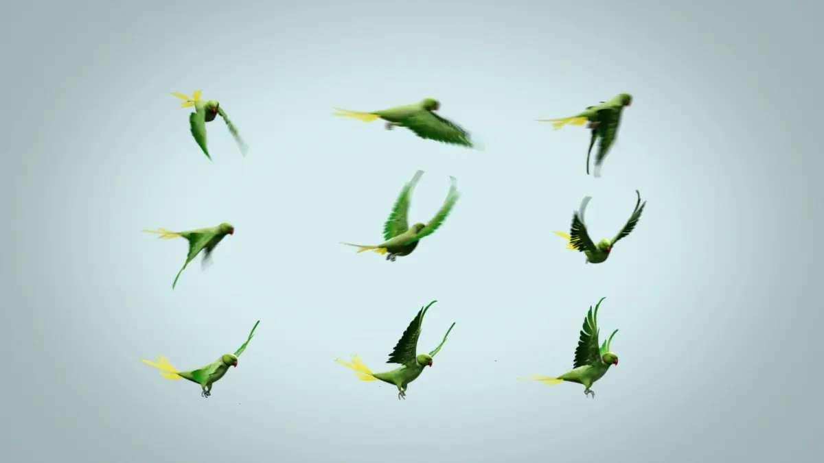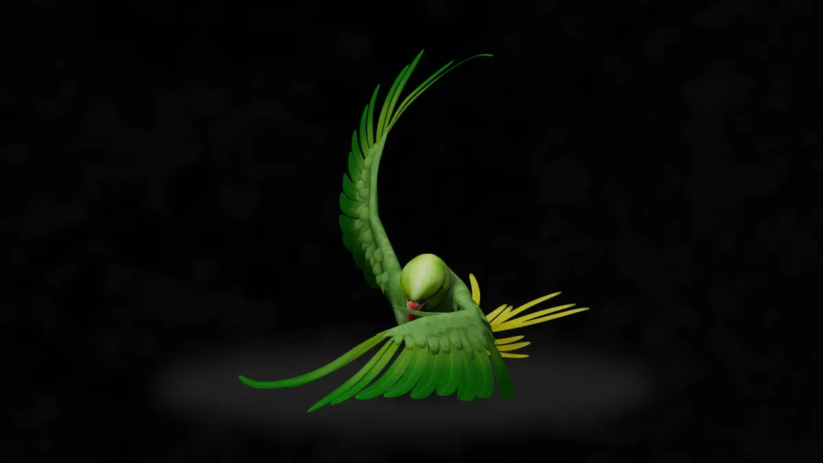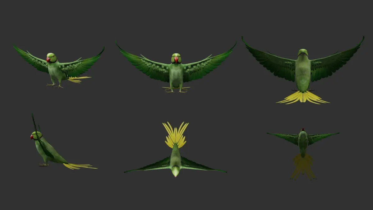 3D bird made with Blender, UV mapping without overlap, the bird is rigged ready to animate. This 3D model has 6116 faces. I had already used it in a video mapping project, made it fly and walk on a circus rope and it worked fine.