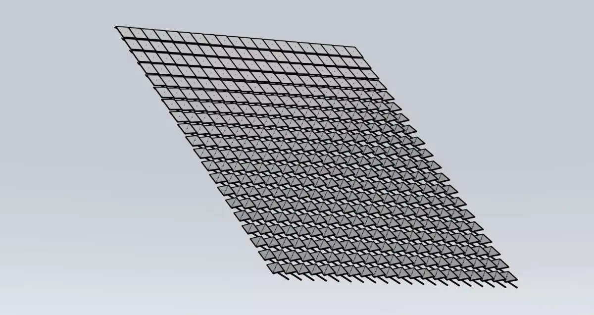 This 3D model represents an architectural mesh grid structure, ideal for use in urban development, modern building facades, and intricate designs in structural engineering. The grid features a geometric pattern, creating a strong and durable aesthetic that can be used in various architectural projects such as building exteriors, privacy screens, or decorative fences. The mesh pattern offers a modern yet functional design that integrates well into both industrial and contemporary settings. It can be applied to any 3D visualization requiring detailed architectural features.
