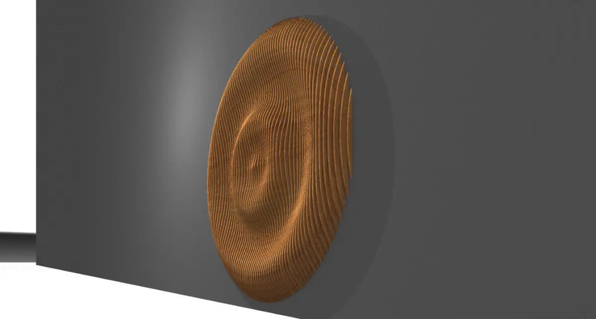 Circle planned wavy panels on wall decoration. It contains waves from the center of the circle.