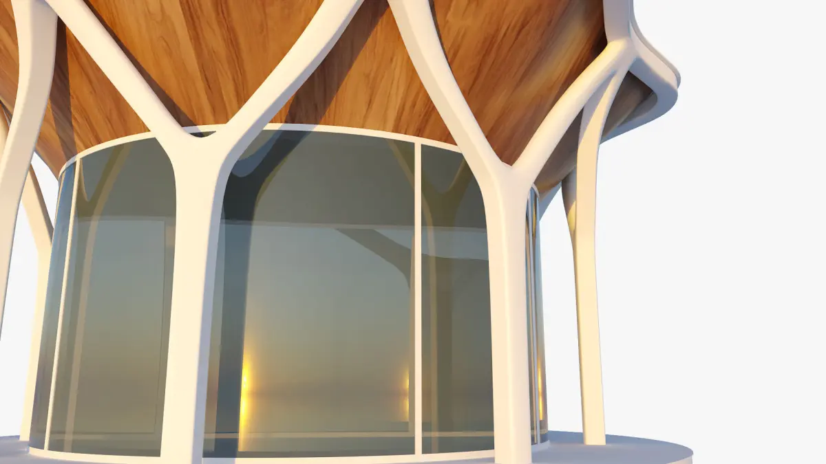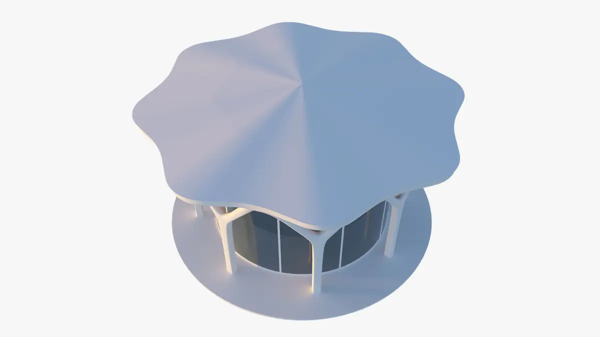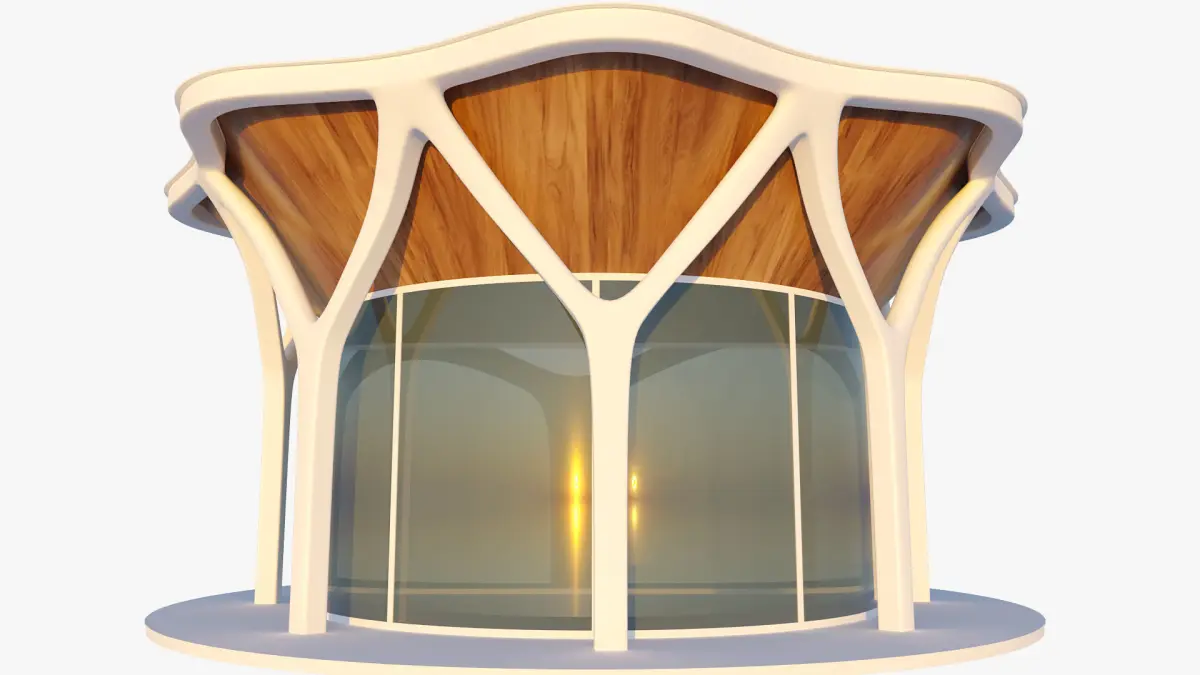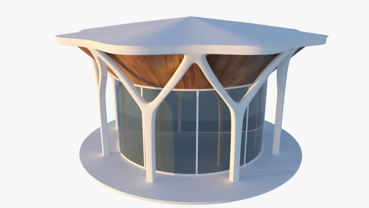 Cylindrical structure made with parametric columns that can be used as a restaurant, home or office.Native scene 3DsMax 2023 and rendered Corona 8. The textures used - tree texture and hdri lighting are attached.General dimensions of the building: 1950x1950x1050cm.