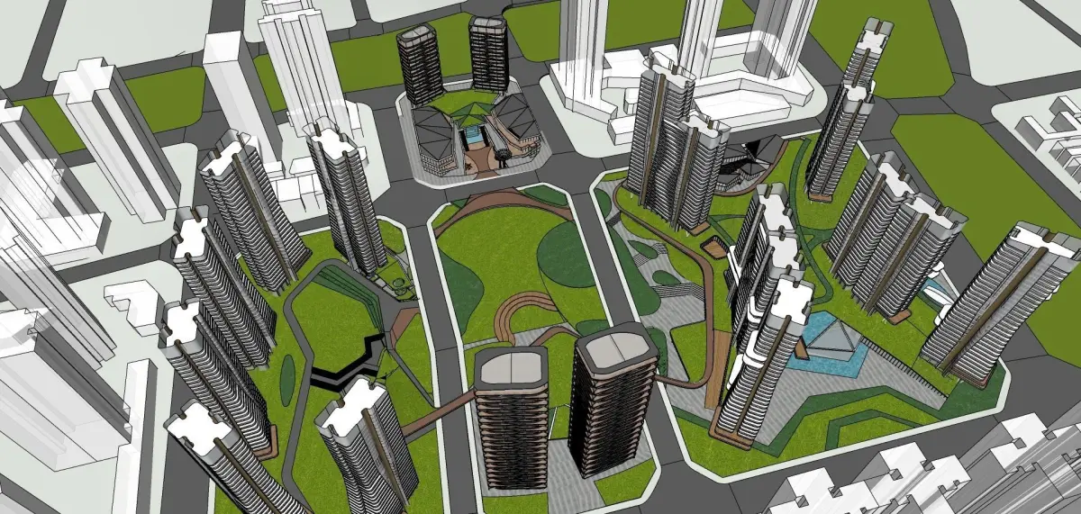 parametric highrise building along contemporary master plan 3D model