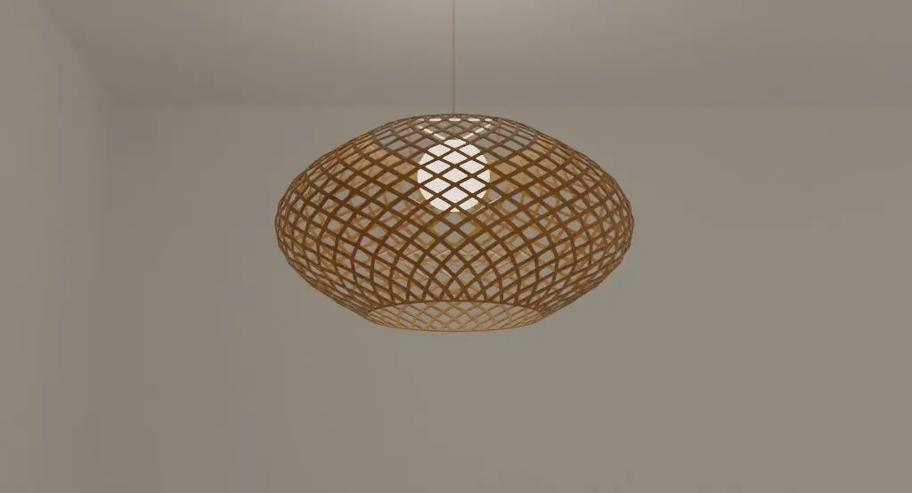 A lamp has been designed which can be used and displayed in any space. It can be made out of any material. The material assigned to it is wood and can be tranformed to bamboo.The lamp acts as a lighting decor in a space and gives a earthly character to it. The lamp can be put up on a dining table or a study table or any hanging light area.