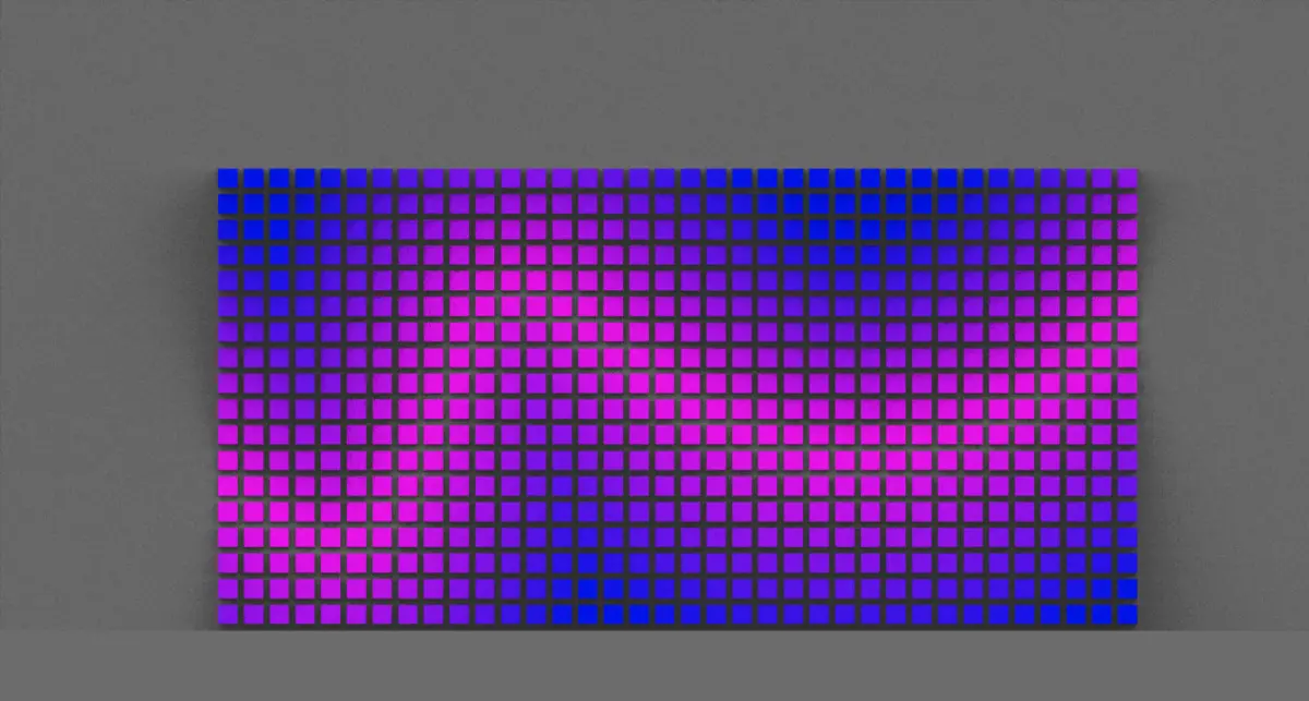Colour of objects evolves from magenta to navy blue as their size increases. Modelled on rhinoceros5 and grasshopper.