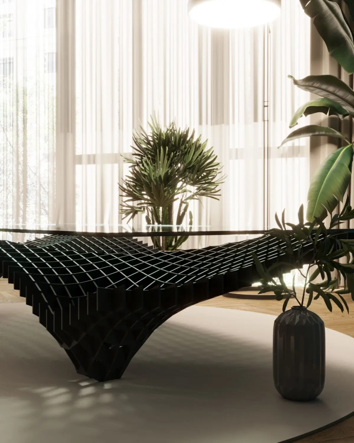 The parametric WAFFLE table design INTERIOR comes with a scene, camera or lights, include only 3dmodel.