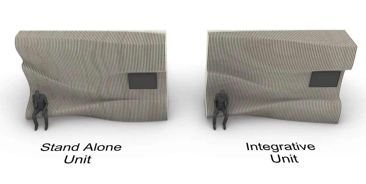 Two parametric wall units, the first one is a stand-alone unit that is supposed to be used on a single wall, which can be used in a residential, commercial and office buildings while the other unit is an integrative one to allow for variable wall length which can be used in different building types such as museums.