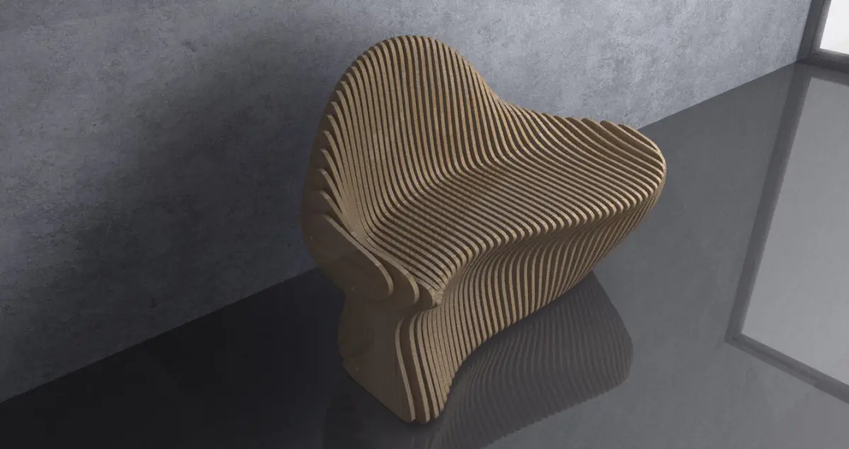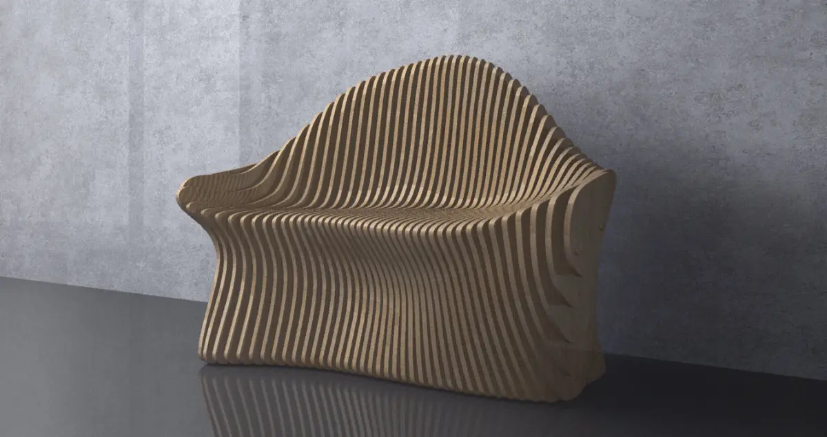 This is a parametric sofa which can be used in interior places, such as offices and houses. Veneered panels assemble through metal rods and give elegance to fluid parts.