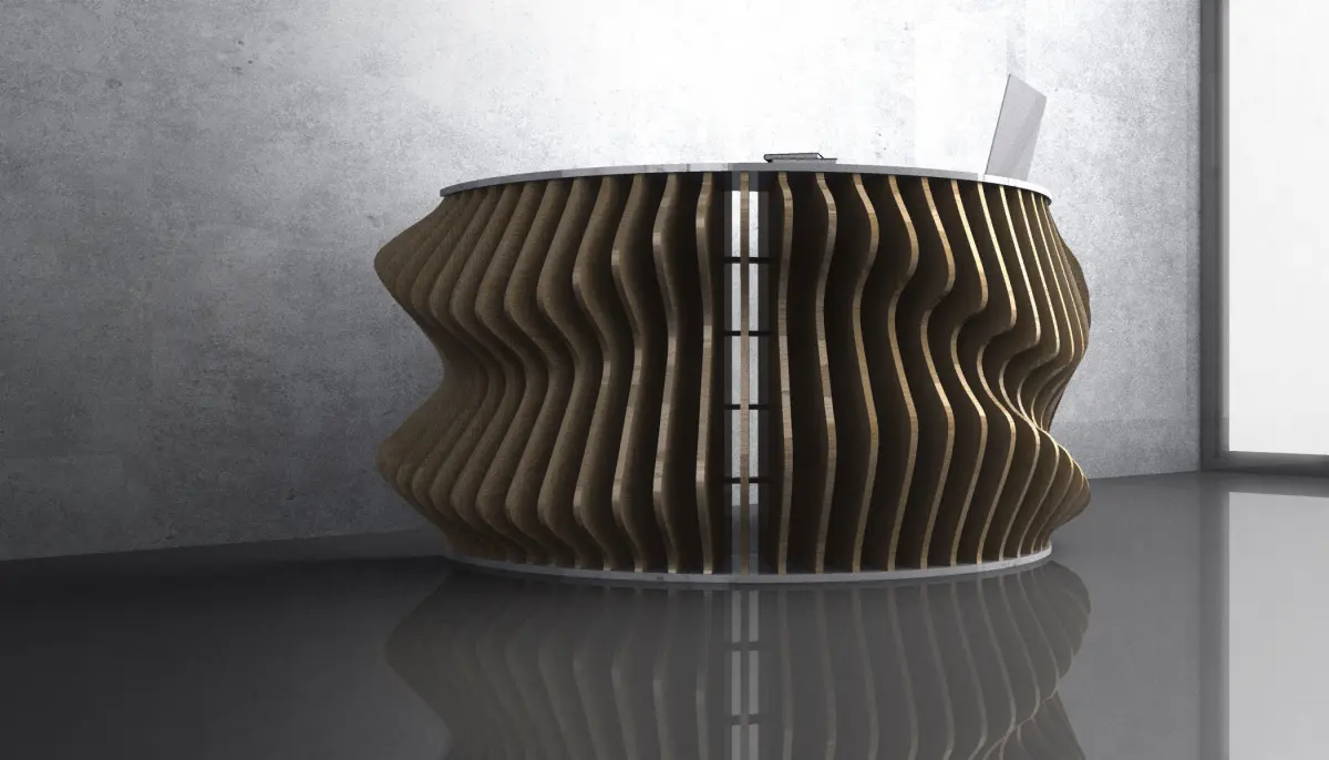 Dimensions: 1640 x 1080 x 780 mm (width - depth - height) (Wood thickness: 15 mm Spaces: (varies) Slices: 41) (File is in CNC_files.zip)