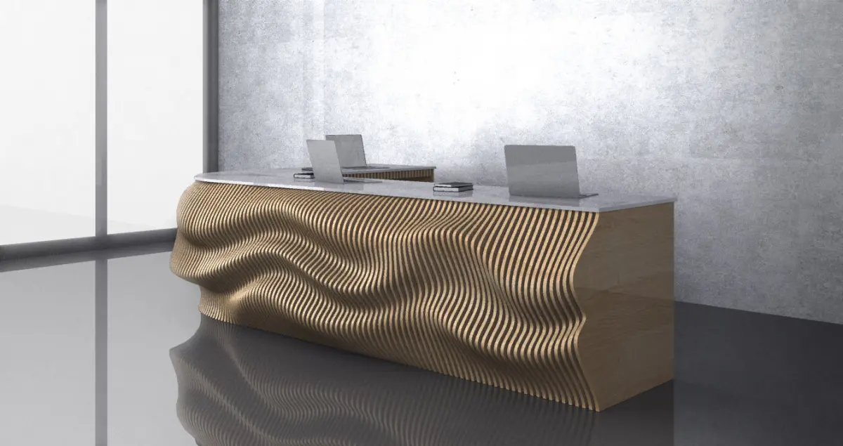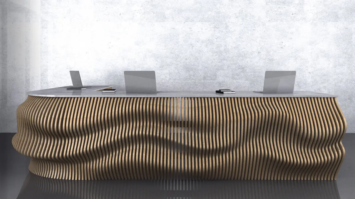 This is a parametric office entry desk which can be used in interior places. It has 3 parts and desk panel.