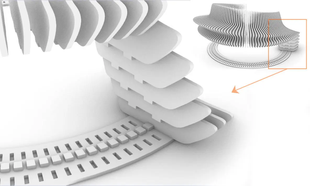 Dimensions: 760 x 2640 x 2640 mm (height - width - depth) (Wood thickness: 15 mm Slices: 109 + Base part)