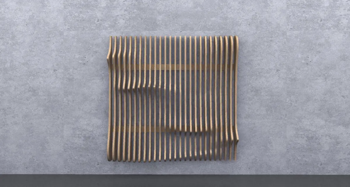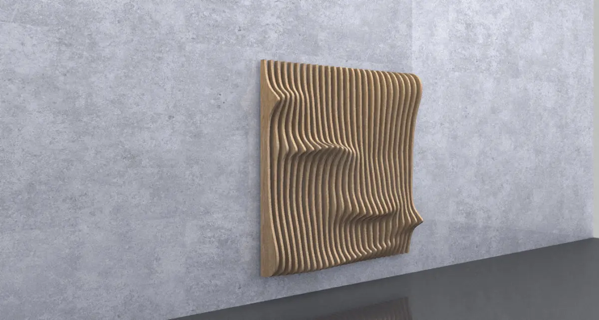 Parametric wavy wooden panels can be used in interior places. Parametric design on wood panels. There are notches on backside of panels to assembly. You can download both 3D model files and 2D cutting files.