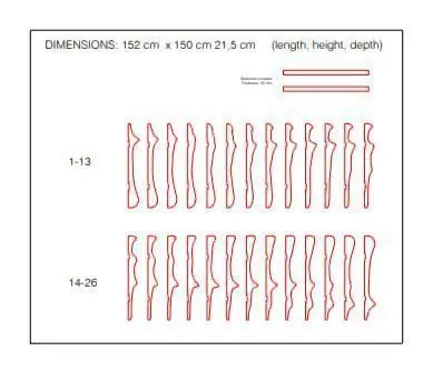Dimensions: 1520 x 1500 x 215 mm (length - height - depth) (Wood thickness: 20 mm Spaces: 40 mm)