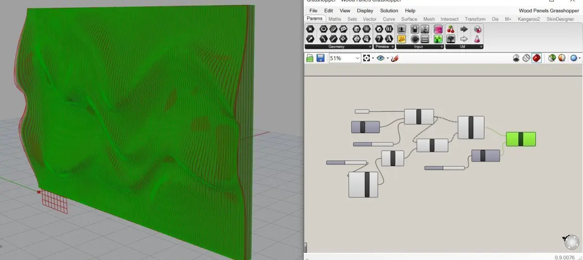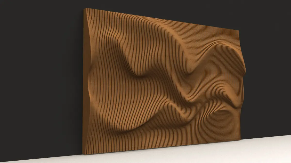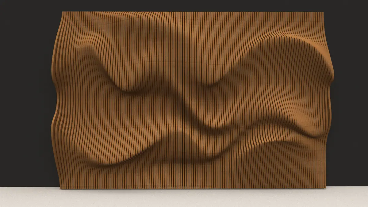 Parametric wavy wooden panels which look like sand dunes can be used in interior places (especially in offices). Parametric design on wood panels.