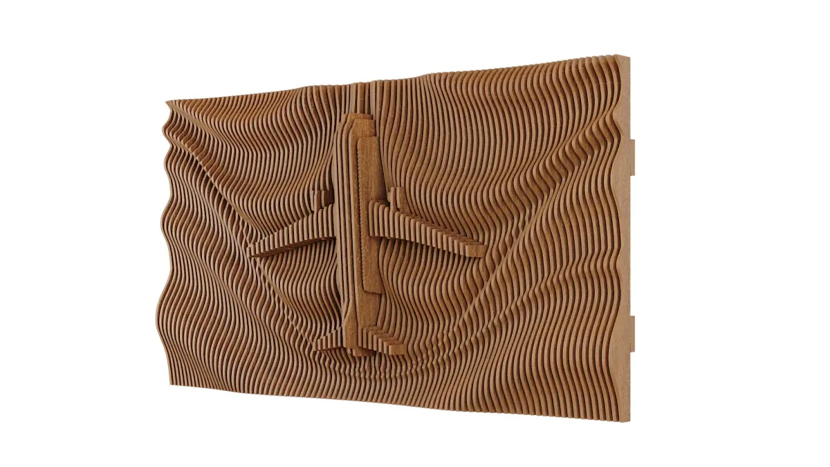 Parametric Wavy Wooden Wall Decor 10 - wood cutting machines Parametric wavy wooden panels can be used in interior places. Parametric design with Plane on wood panels. 12 mm Thick Wood (214x120x25) cm consisting of 89 slices. • You will need 5 sheets of (1220x2440mm) • A versatile size suitable for a wide range of spaces, offering a balanced combination of presence and adaptability. Installation is easy. Pictures of the installation method have been attached. It is installed on a wooden board and the slides are arranged in numbers to facilitate the installation process. If you find any problem, do not hesitate to contact us.