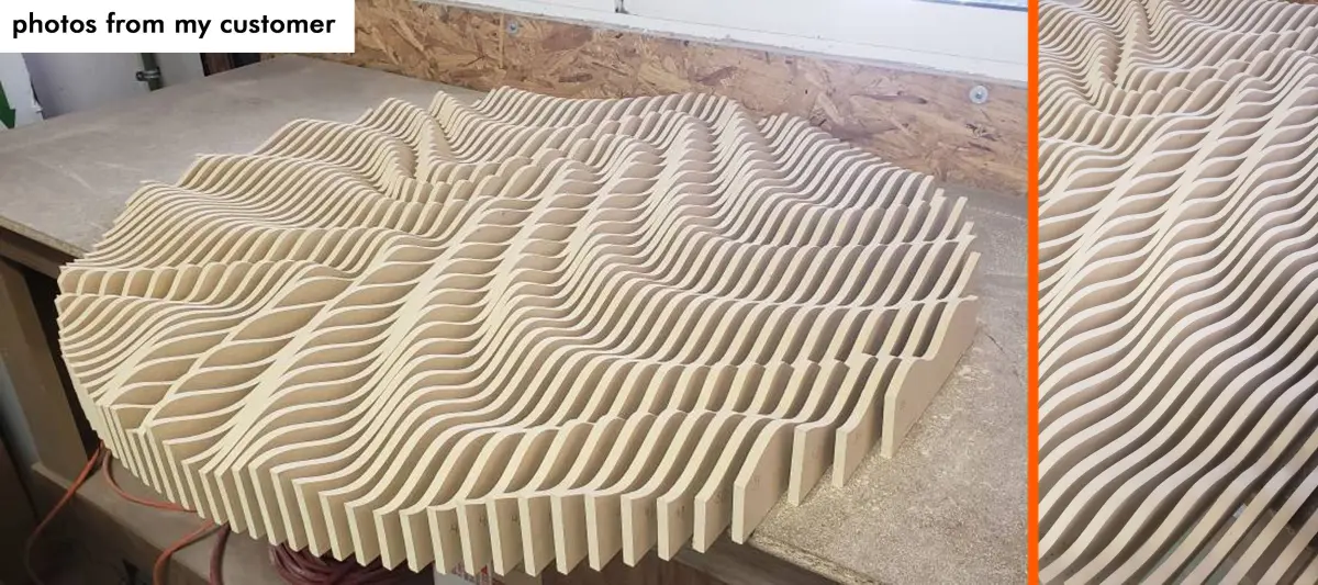Parametric wavy wooden panels can be used in interior places. There are 2 alternatives on dimensions, I explained them below.