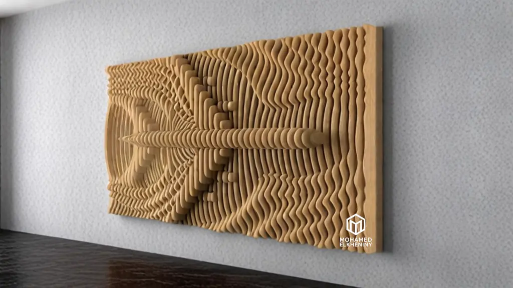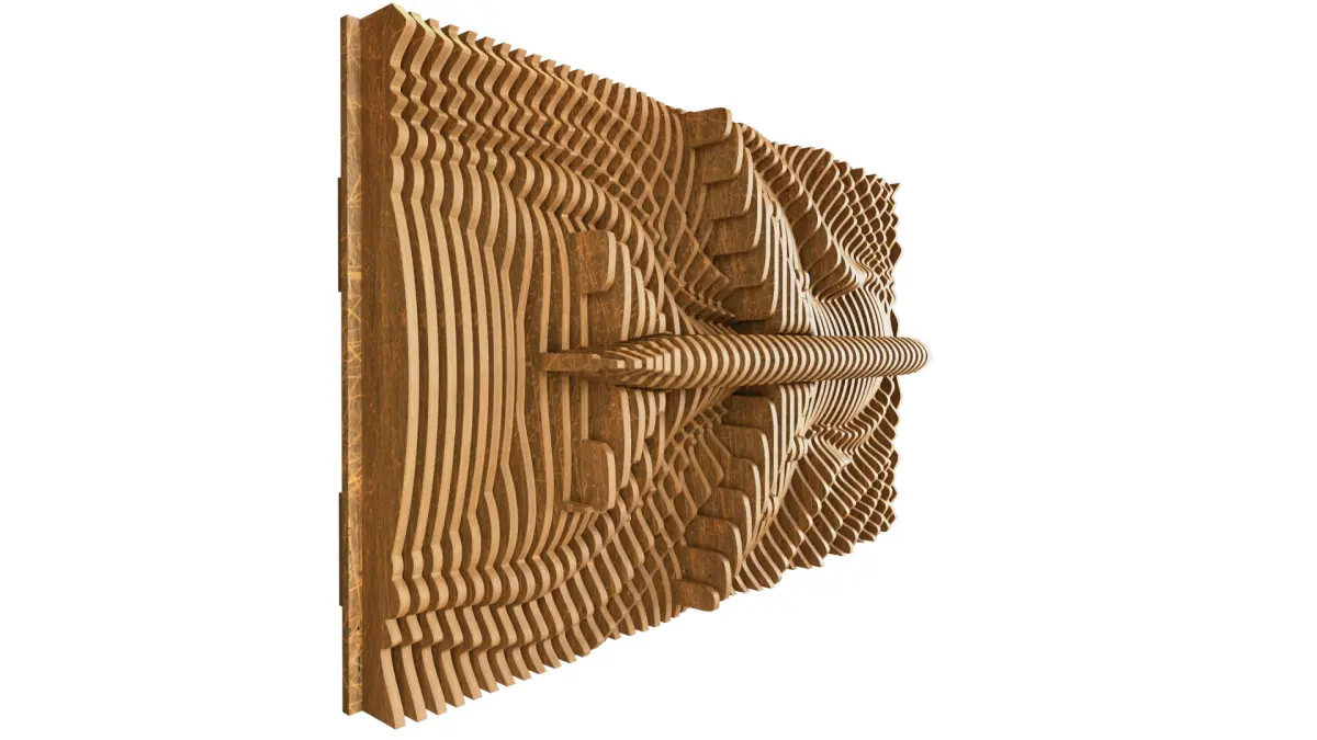 Parametric Wavy Wooden Wall Decor 21 - wood cutting machines Parametric wavy wooden panels can be used in interior places. Parametric design with Plane on wood panels. 12 mm Thick Wood (125x70x18) cm consisting of 52 slices. • You will need 2 sheets (1220x2440mm) A versatile size suitable for a wide range of spaces, offering a balanced combination of presence and adaptability. Installation is easy. Pictures of the installation method have been attached. It is installed on a wooden board and the slides are arranged in numbers to facilitate the installation process. If you find any problem, do not hesitate to contact us.