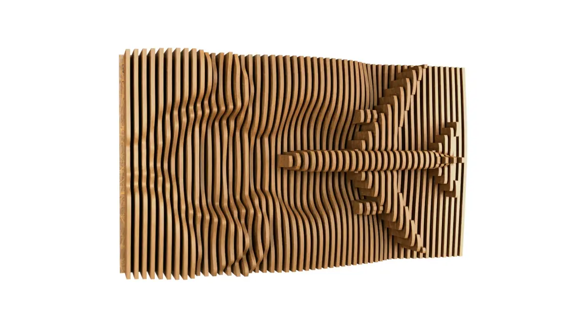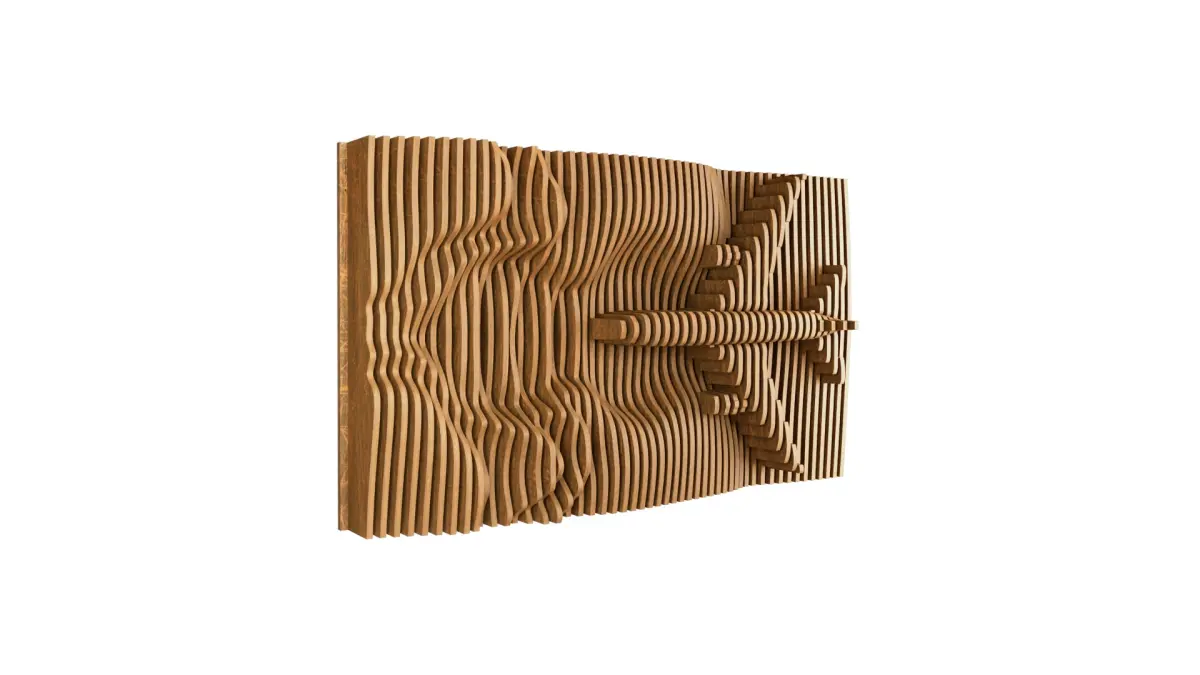 Parametric Wavy Wooden Wall Decor 22 - wood cutting machines Parametric wavy wooden panels can be used in interior places. Parametric design with Plane on wood panels. 12 mm Thick Wood (125x70x18 ) cm consisting of 51 slices. • You will need 2 sheets (1220x2440mm) A versatile size suitable for a wide range of spaces, offering a balanced combination of presence and adaptability. Installation is easy. Pictures of the installation method have been attached. It is installed on a wooden board and the slides are arranged in numbers to facilitate the installation process. If you find any problem, do not hesitate to contact us.