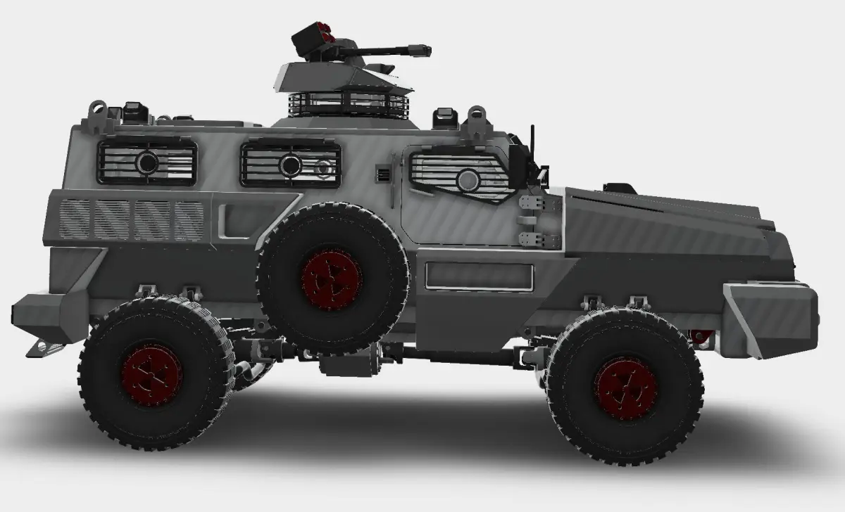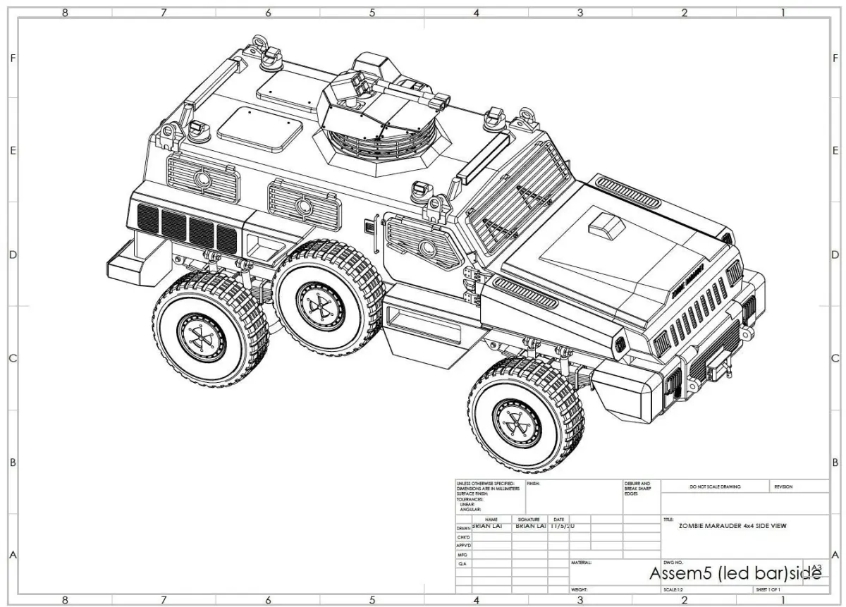 The same heavy-duty MRAP armoured personnel carrier seen on Top Gear, but with more gear ready to take on the Zombie onslaught. Complete with accurate engineering features including underside suspension and drivetrain. Enjoy!