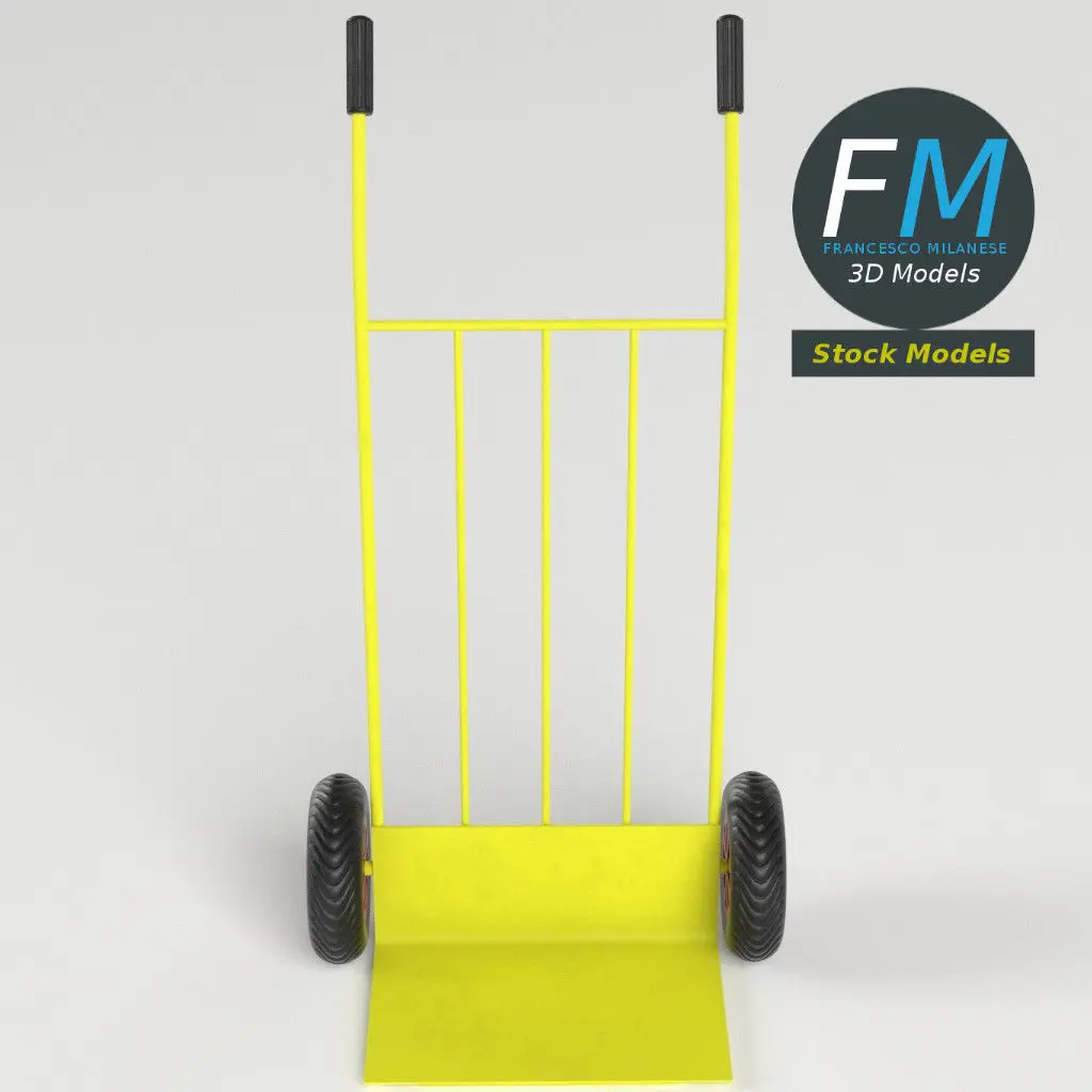 Parcel trolley sack truck 3D Model. 2 individual objects (frame, wheels; so, you can easily rotate or even animate it), sharing the same non overlapping UV Layout map, Material and PBR Textures set. Production-ready 3D Model, with PBR materials, textures, non overlapping UV Layout map provided in the package.