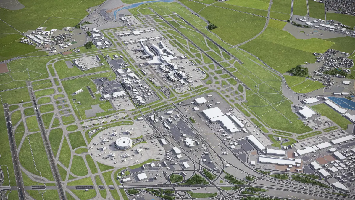 - This airport model is georeferenced, exact and accurate to real-world scale