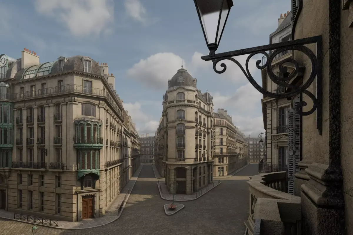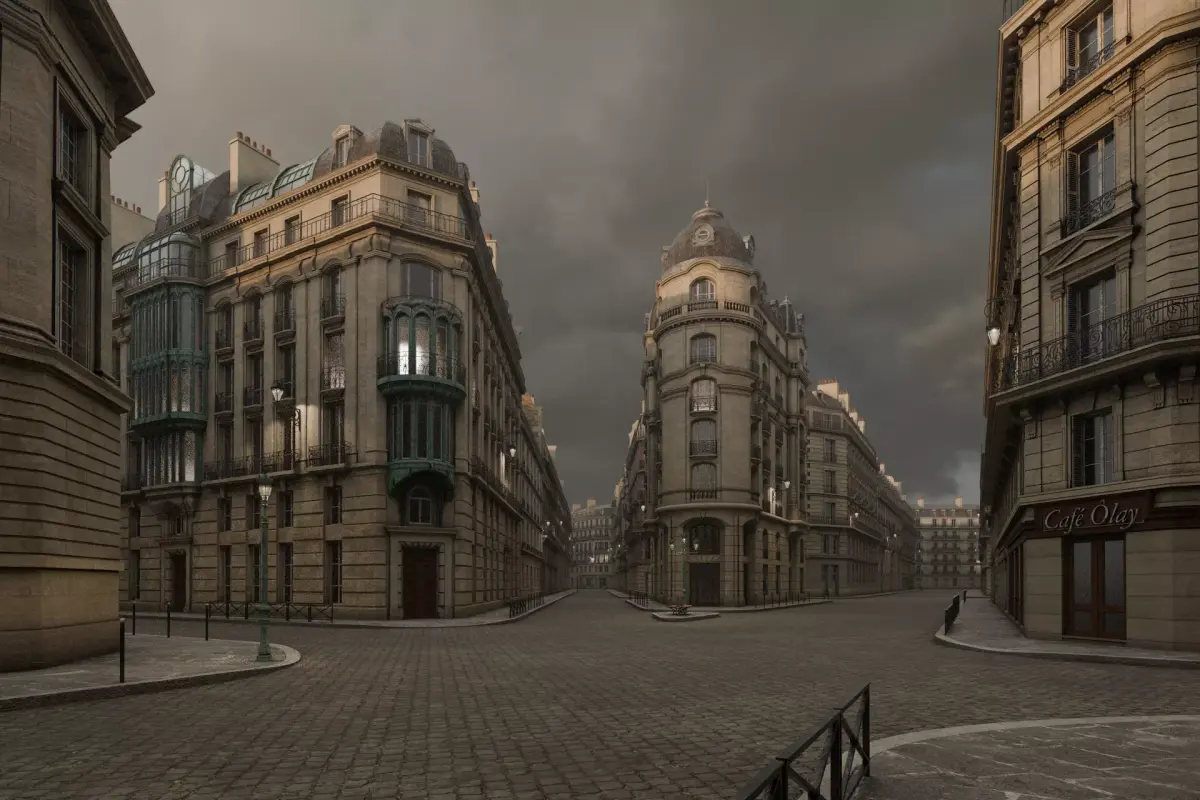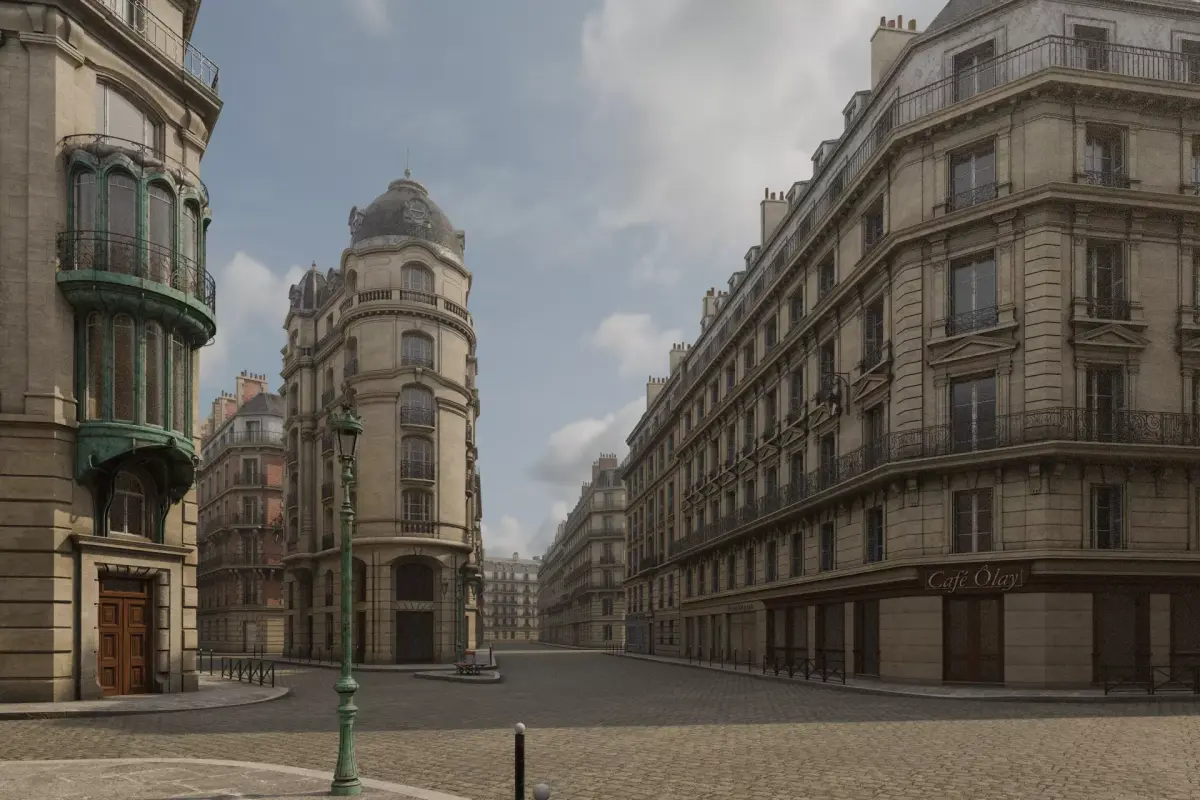 Detailed 3D model of a Parisian Boulevard. Suitable for high resolution close-ups. Real world scale. Cameras are placed at eye level (~1.65m / ~5'5''). Scale figurines (visible in some renders) are 1.80m/5'11'' in height.